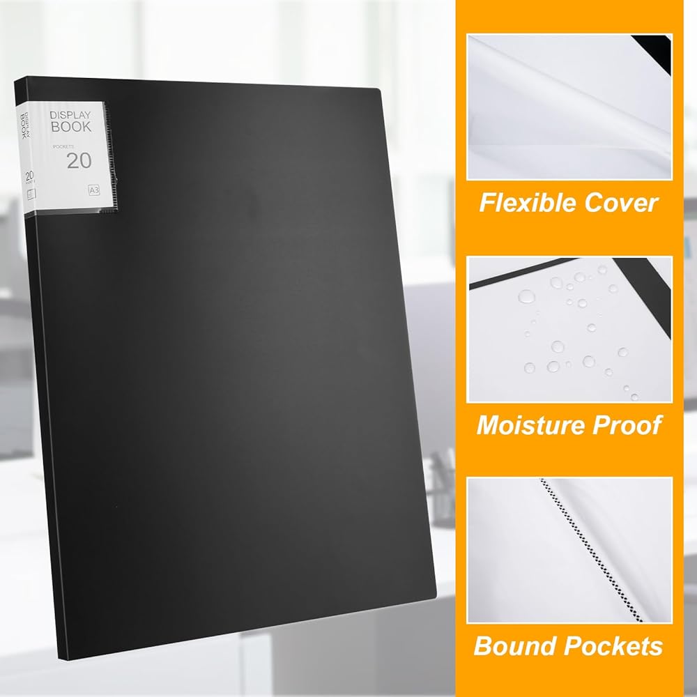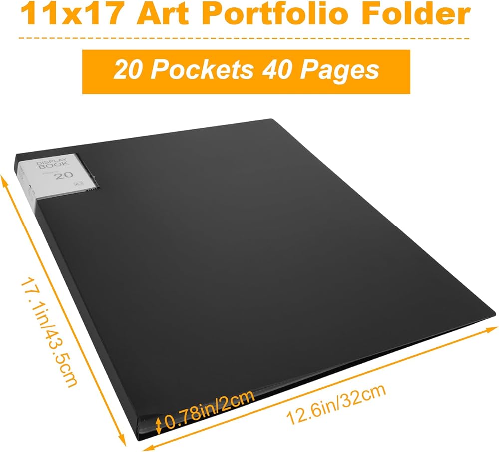 2 Pack Art Portfolio Binder 11 "x17" كتاب عرض تقديمي ، مجلد أسود مع الأكمام البلاستيكية ، مجلد محفظة فني 20 جيب مع حامي ورقة واضحة ، كتاب عرض احترافي للأعمال الفنية
