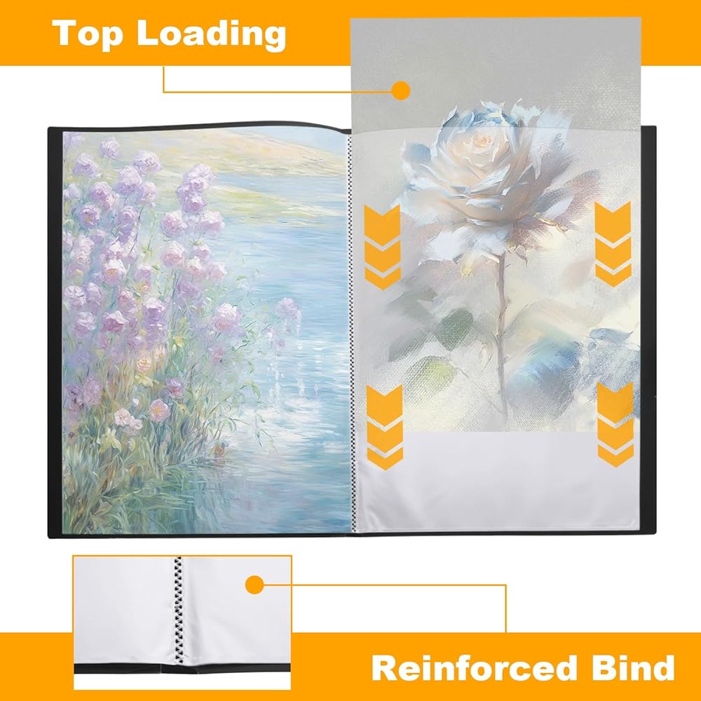 مجلد المحفظة الكبير: موثق محفظة فنية كبيرة مع 20 جيوب التحميل العليا تعرض 40 صفحة. يساعد في حماية عملك الفني من الغبار والرطوبة والأضرار العرضية. حافظ على عملك الفني مرتبة وآمنة ، ومساعدتك على التنظيم والعرض