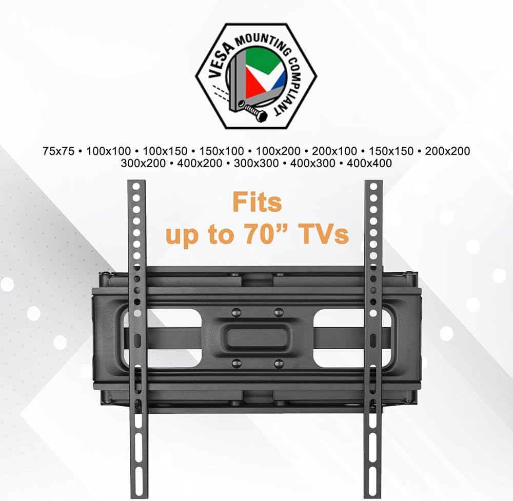 شاشات تلفزيون من 37 بوصة إلى 70 بوصة بأوزان تصل إلى 99 رطلاً (45 كجم). هو - هي