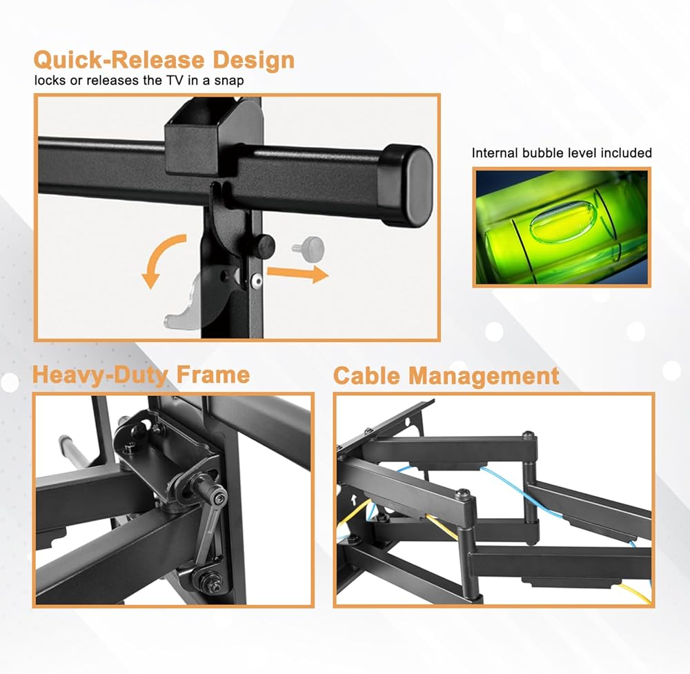 تم تصميم هذا الحامل الجداري ذو الحركة الكاملة ثنائي الذراع لشاشات LCD والمنحنية وOLED والبلازما المسطحة.
