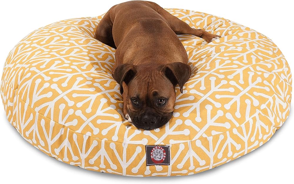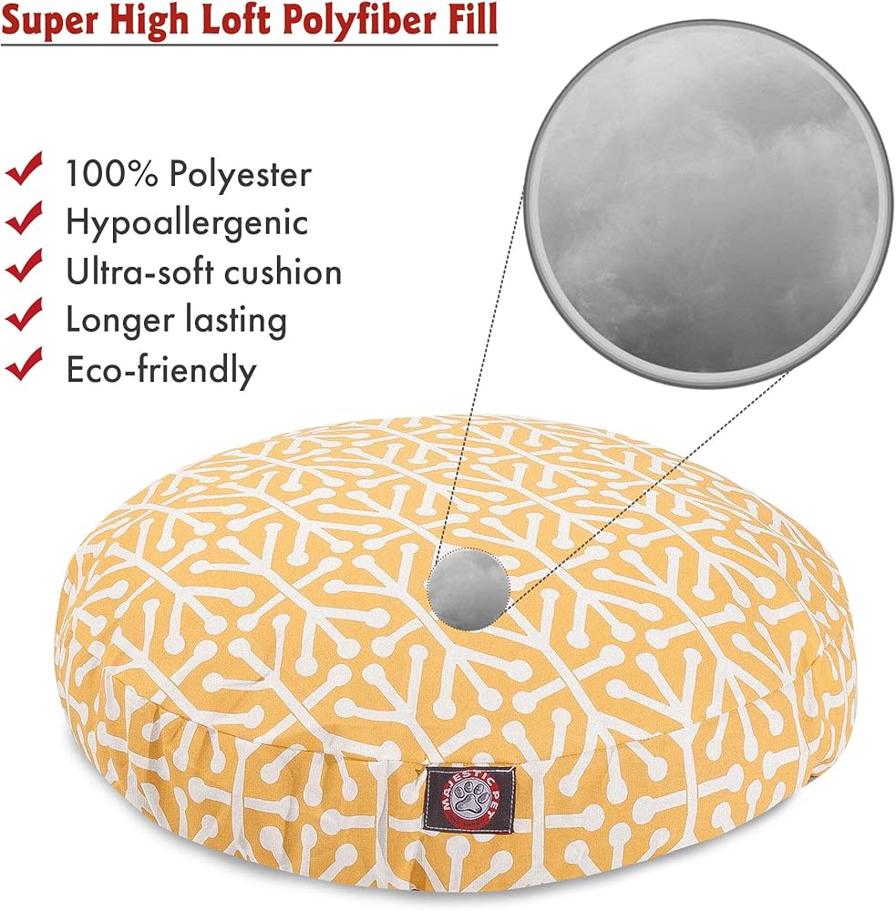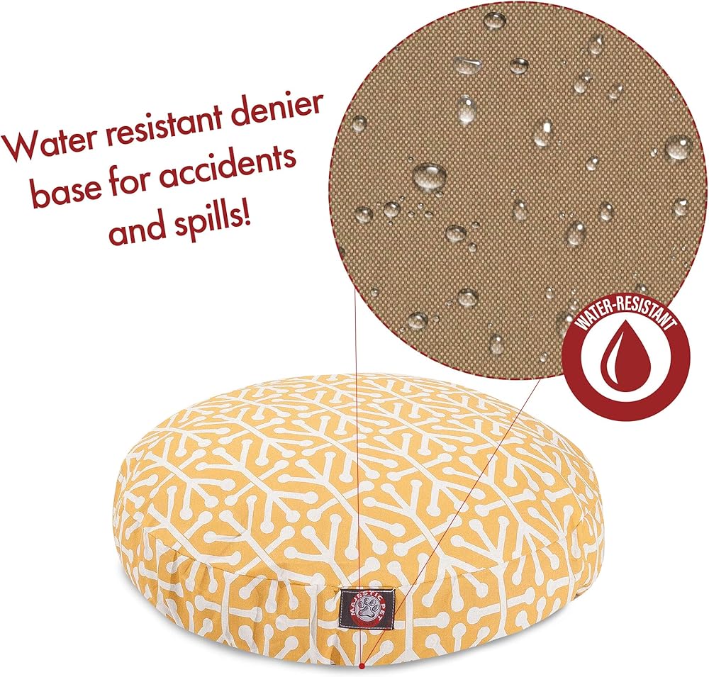 Let your pet take a vacation with the comfort of the Citrus Aruba Pet Bed! The Majestic Pet Citrus Aruba Large Round Pet Bed is the perfect combination of style, function and comfort. It features a removable zippered slipcover that is woven from durable Outdoor Treated polyester, with 1000 hours of UV protection. The base of the bed is made of heavy duty waterproof 300/600 Denier fabric, which allows you to move your pet wherever you are, inside or out. Each bed is filled with a super plush fiberfill that provides ample amounts of comfort. To wash: Spot clean the slipcover with a mild detergent and hang dry. Dimensions: 42 x 42 x 5.