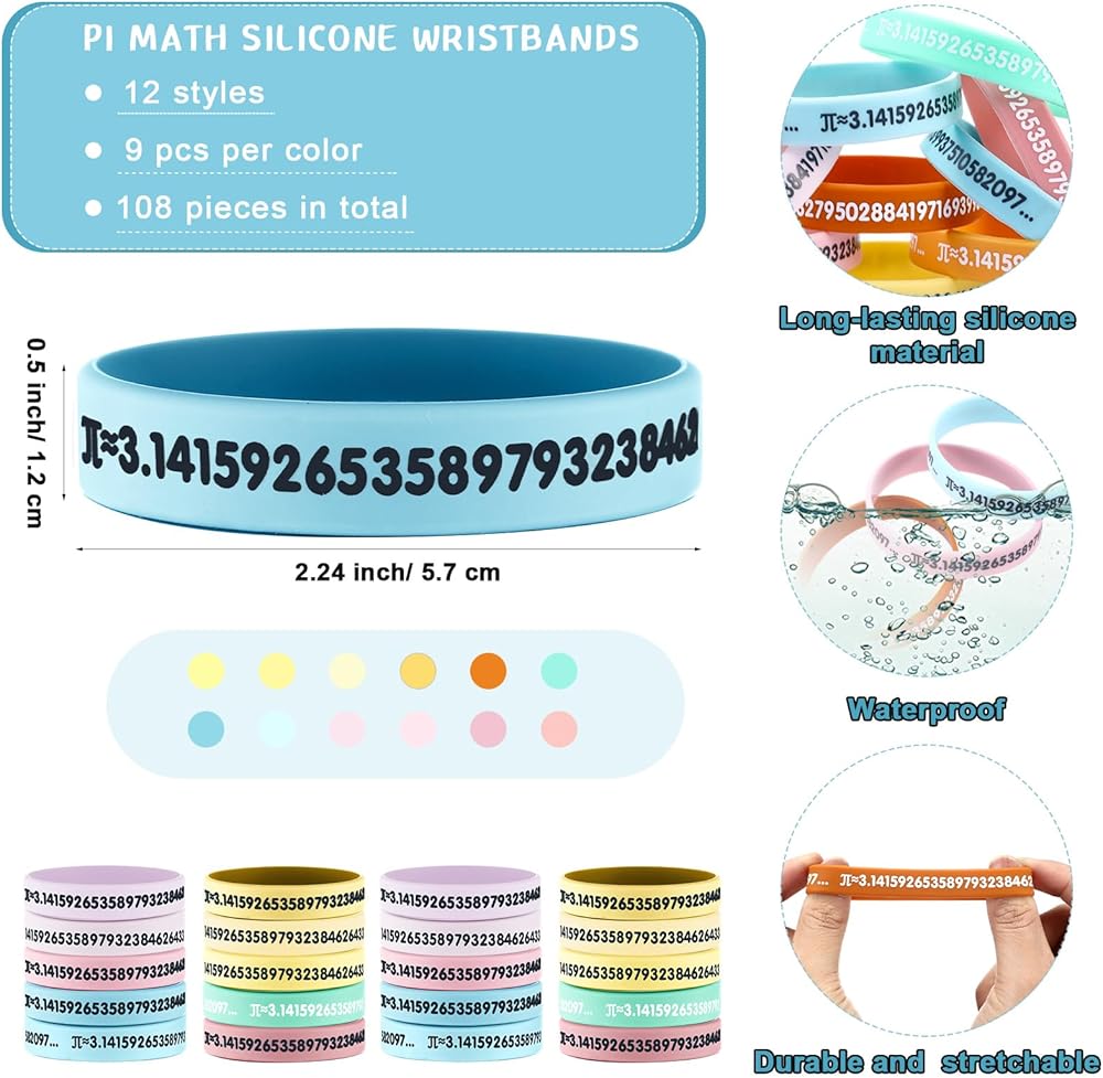 كمية كافية: تحتوي كل حزمة على 108 معصم رياضيات PI ، مما يوفر كمية كافية للحفلات المتاحة إلى المدرسة ، ويوم تقريبًا PI ، يوم PI ، زينة الحفلات والعديد من الاحتياجات التعليمية الأخرى ؛ تتوفر معصم PI Day بألوان 12 XMAS ، بما في ذلك البرتقالي والأصفر والأخضر والأزرق ، وما إلى ذلك ، مثالية لإضافة اللون إلى ملابسك أثناء إظهار حكمتك والذكاء في مجال الرياضيات