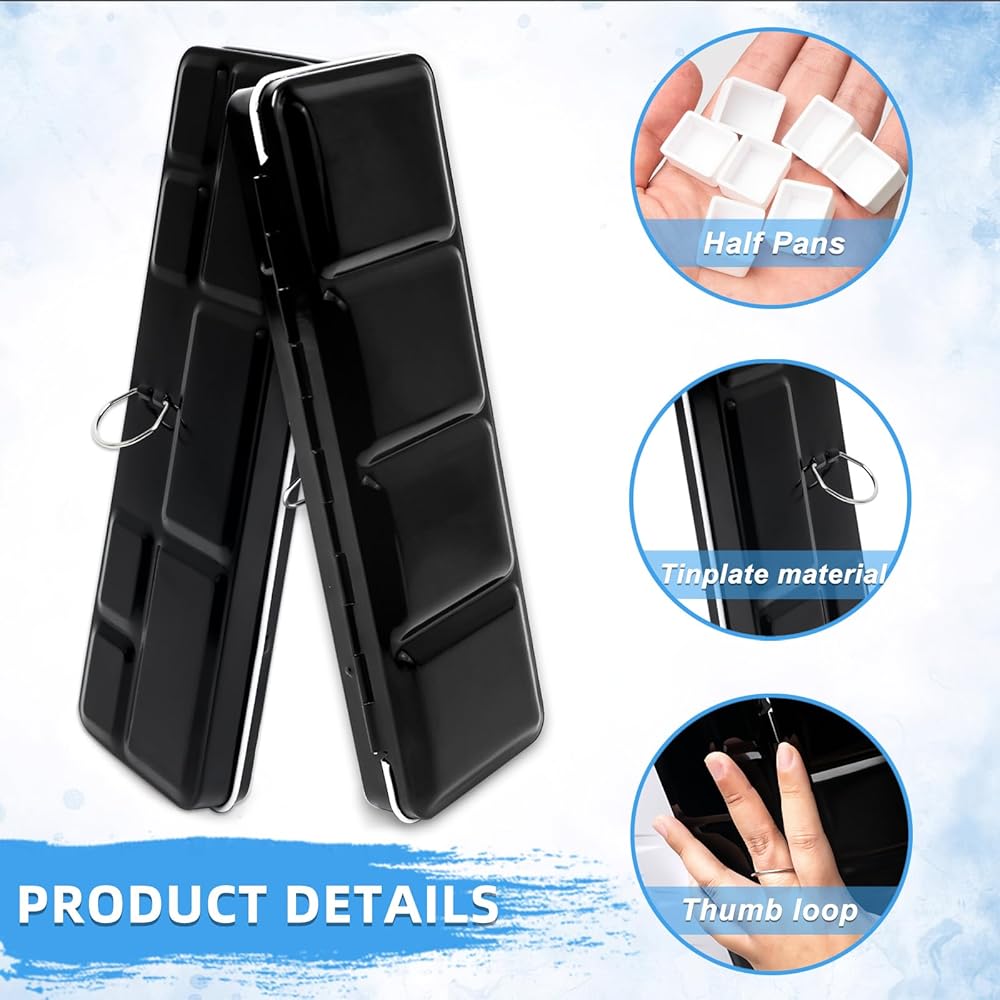 Advantages: The watercolor pans empty fit into the slots of the palette and prevent them from falling during movement, providing stable and reliable protection. watercolor half pans can be used to mix colors, allowing artists to mix and experiment with different shades.