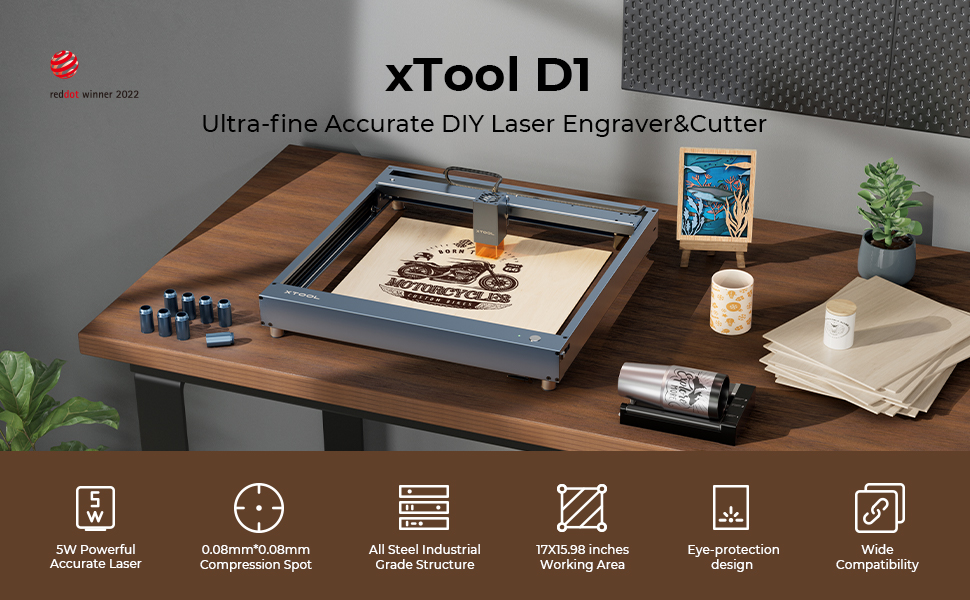 يتميز XTool D1 5W 5W ، وهو مثالي للقادمين الجدد بالنيزر للليزر ، ويتميز XTOOL D1 5W ، وهو مثالي للقادمين الجدد لنقش الليزر والقطع ، ويتمكن من نقش على معظم المواد. يجعل تصميمه سهل الاستخدام مثاليًا للهواة وعشاق DIY.