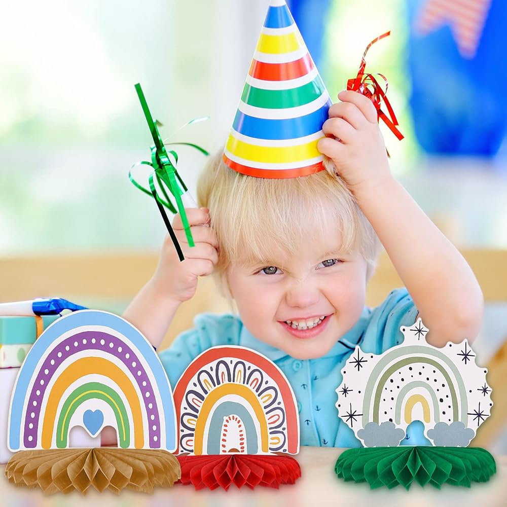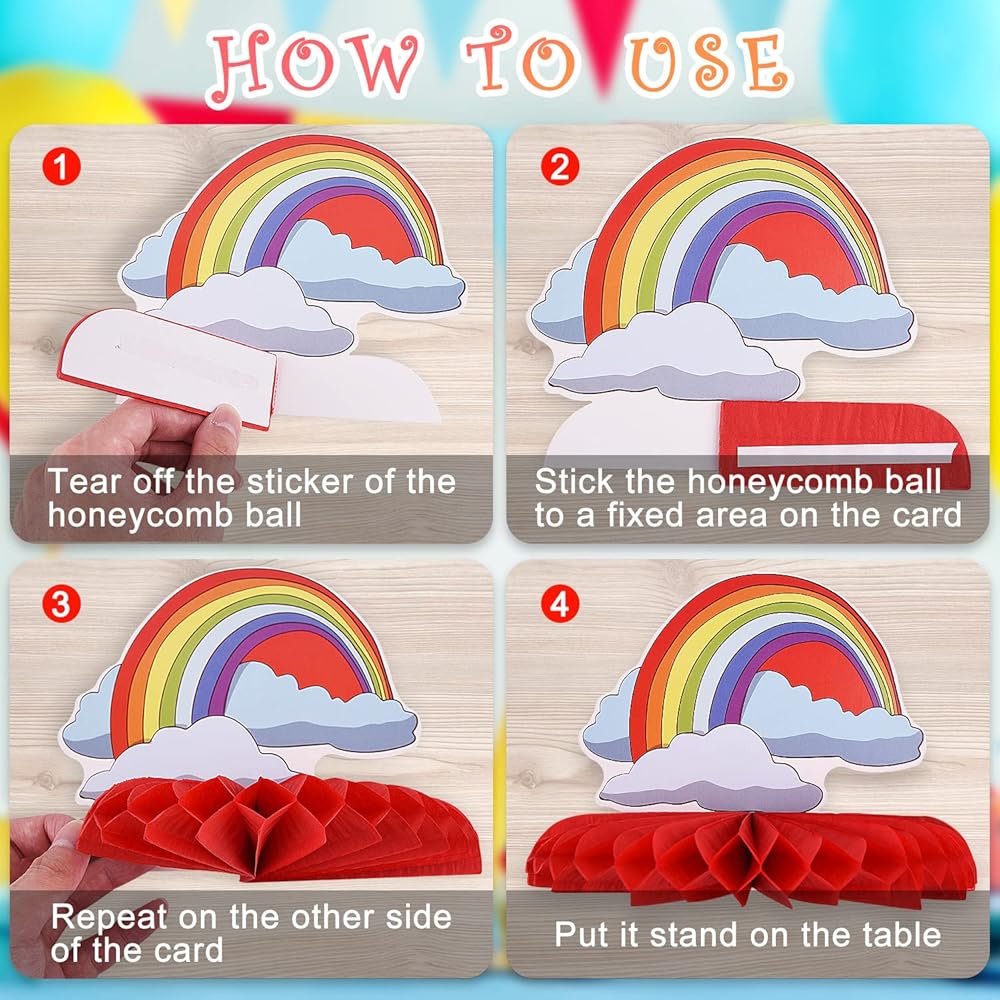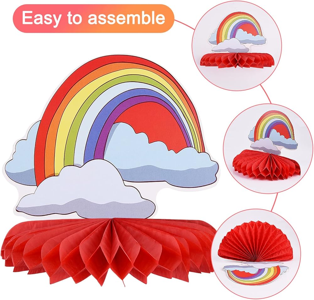 Easy to Assemble:Just need to tear off the sticker at the bottom of the rainbow centerpiece decoration, then paste the card bottom, it is easily and save your time.