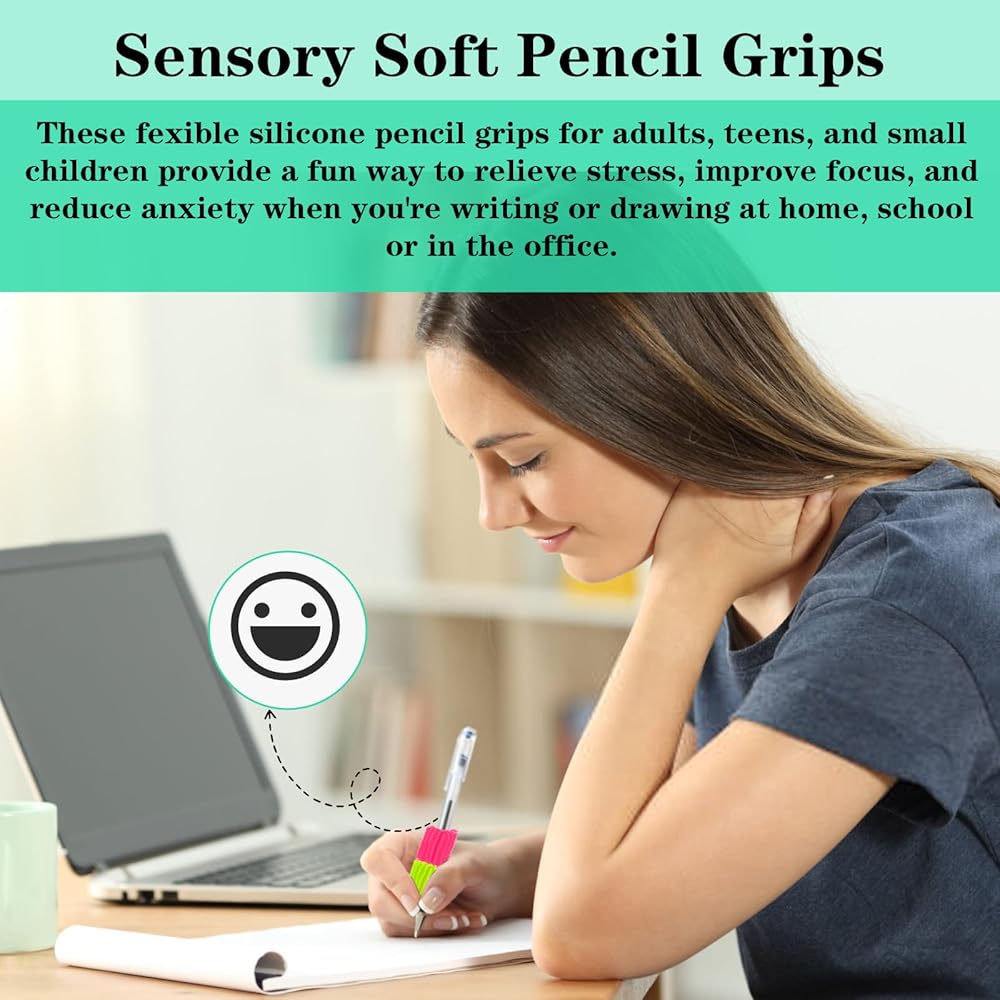 【Relieve Pressure and Enhance Focus】 Our pencil soft grips are designed to relieve pressure and improve concentration for kids and teens. These colorful cushion grips provide a fun sensory stimulation to reduce anxiety while writing or drawing, make writing and drawing more enjoyable and help maintain focus for children