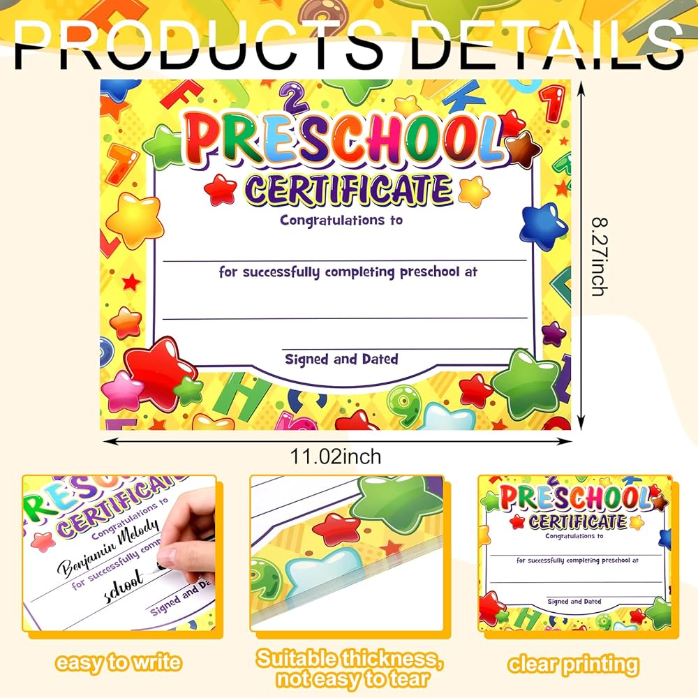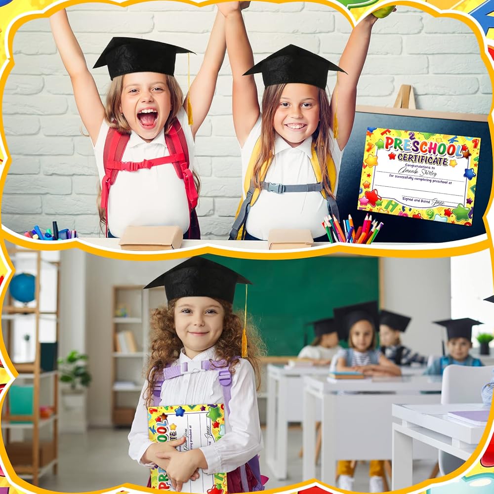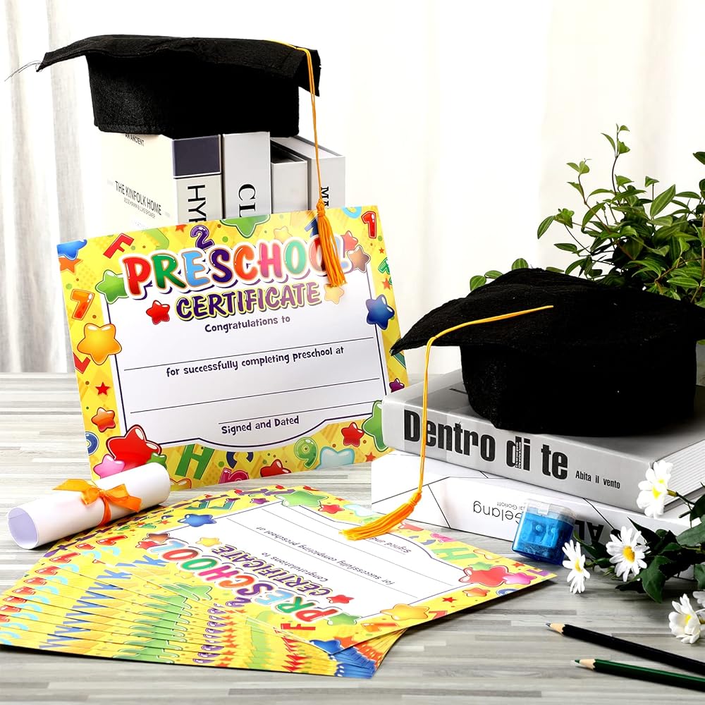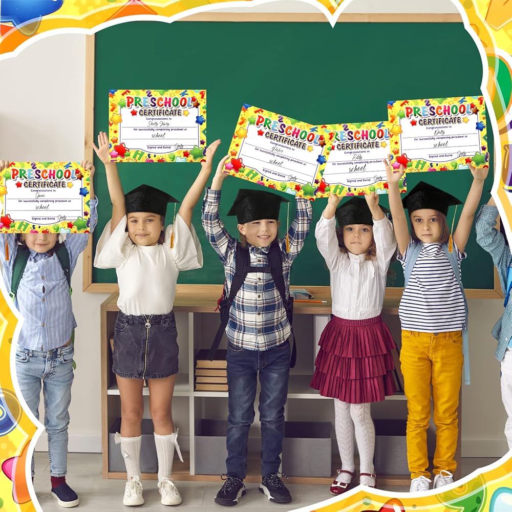 24 حزمة الحزمة حجم التخرج من الحزمة مجموعة للأطفال مع شهادة دبلوم ما قبل المدرسة شهادة التخرج من طقم التخرج من رياض الأطفال لاستلواحات الحزب الابتدائي لمرحلة ما قبل المدرسة