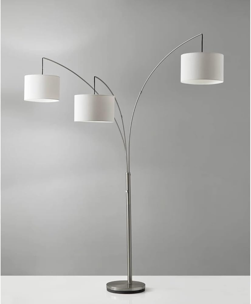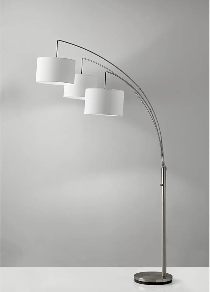 The contemporary Trinity Arc Lamp presents warm, rustic alternative to the typical arc lamp. A trio of beige burlap shades are suspended from arms with an antique bronze finish and controlled with a four-way rotary switch on the main pole. Three 100W incandescent bulbs or equivalent CFL's provide enough light to brighten an entire room. This lamp has a clear cord and is smart outlet compatible. Bulbs are not included. All Adesso lighting products are either UL listed or ETL listed, meaning it has been tested and approved to meet the government-regulated safety standards for the USA. When shopping for lighting products, we recommend to always look for the UL or ETL marks to ensure you are purchasing lighting that has been tested for safety standards by a 3rd party testing lab. Unfortunately, not all lighting products in the marketplace have been through 3rd party safety testing. 3-way rotary switch