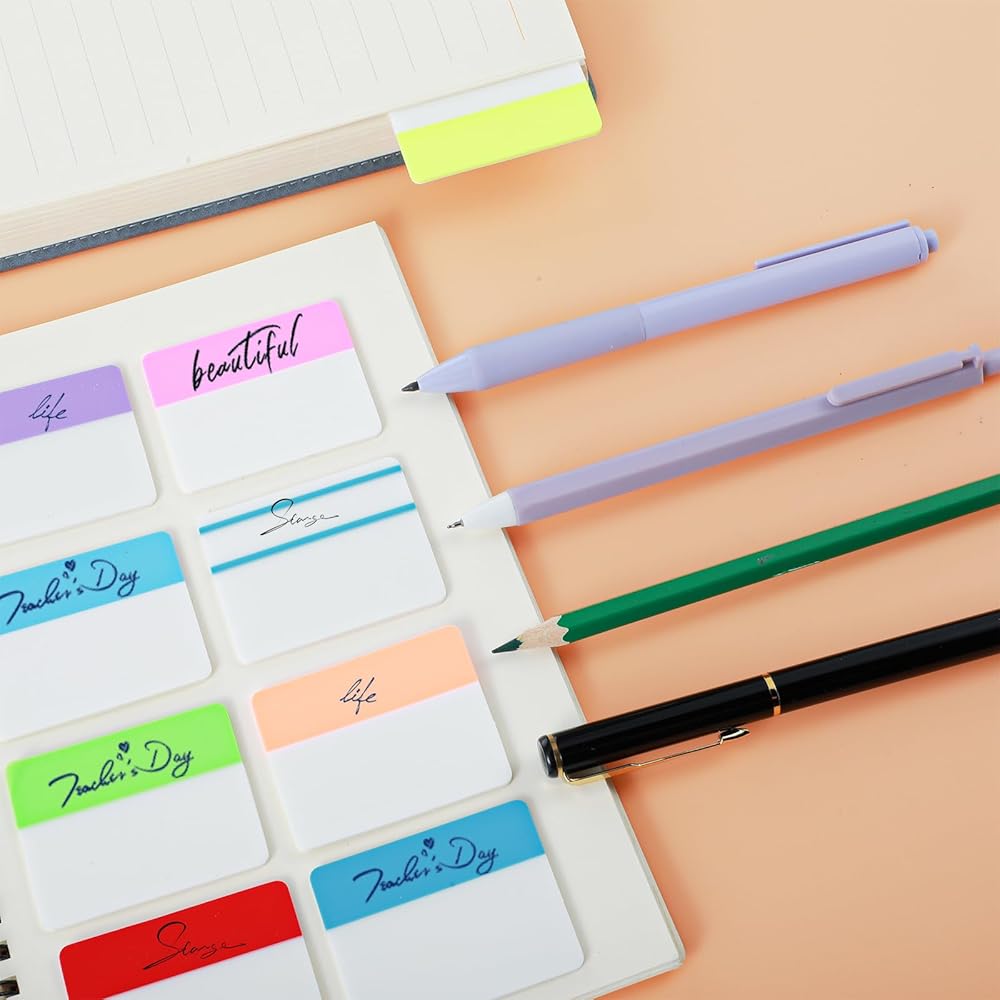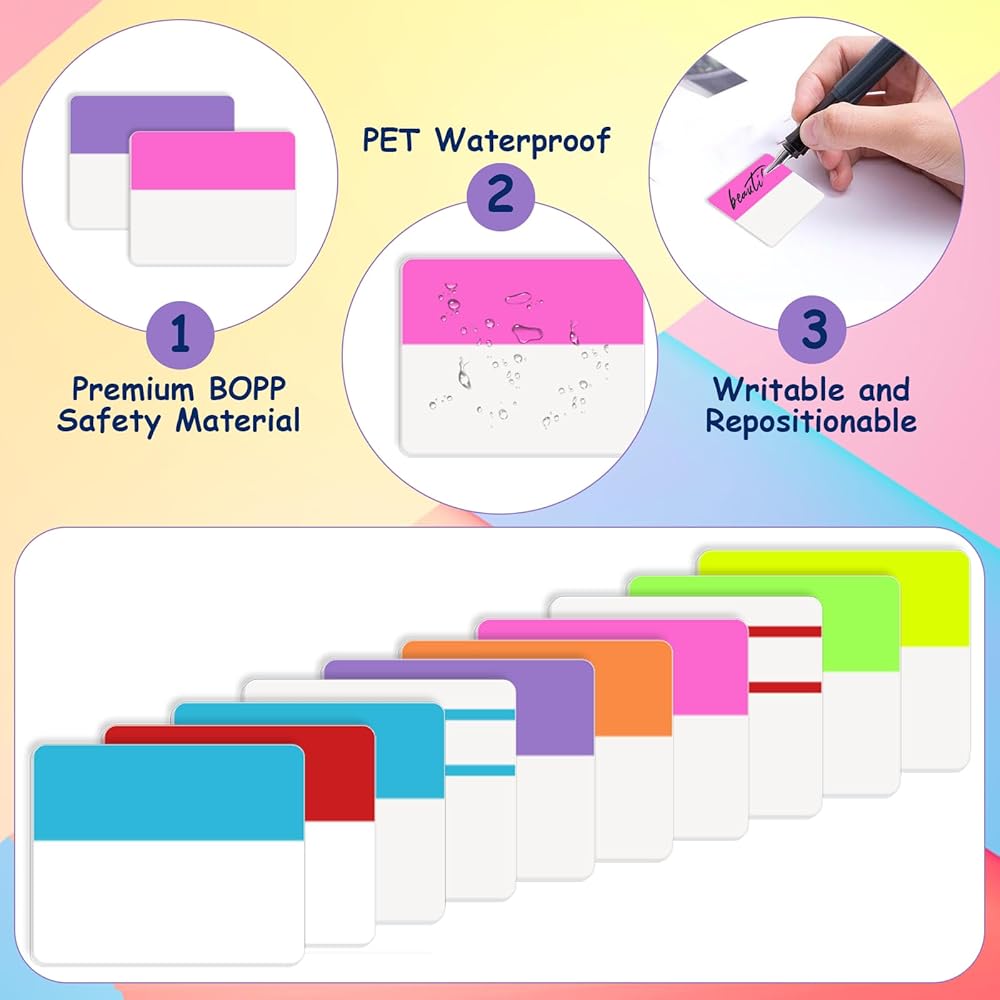【Safety Material】Tabs for notebooks are made of premium PET material and special adhesive, waterproof, non-toxic, no odor, and smooth writing. Self adhesive part of book tabs are transparent and does not obscure the text of the page.
