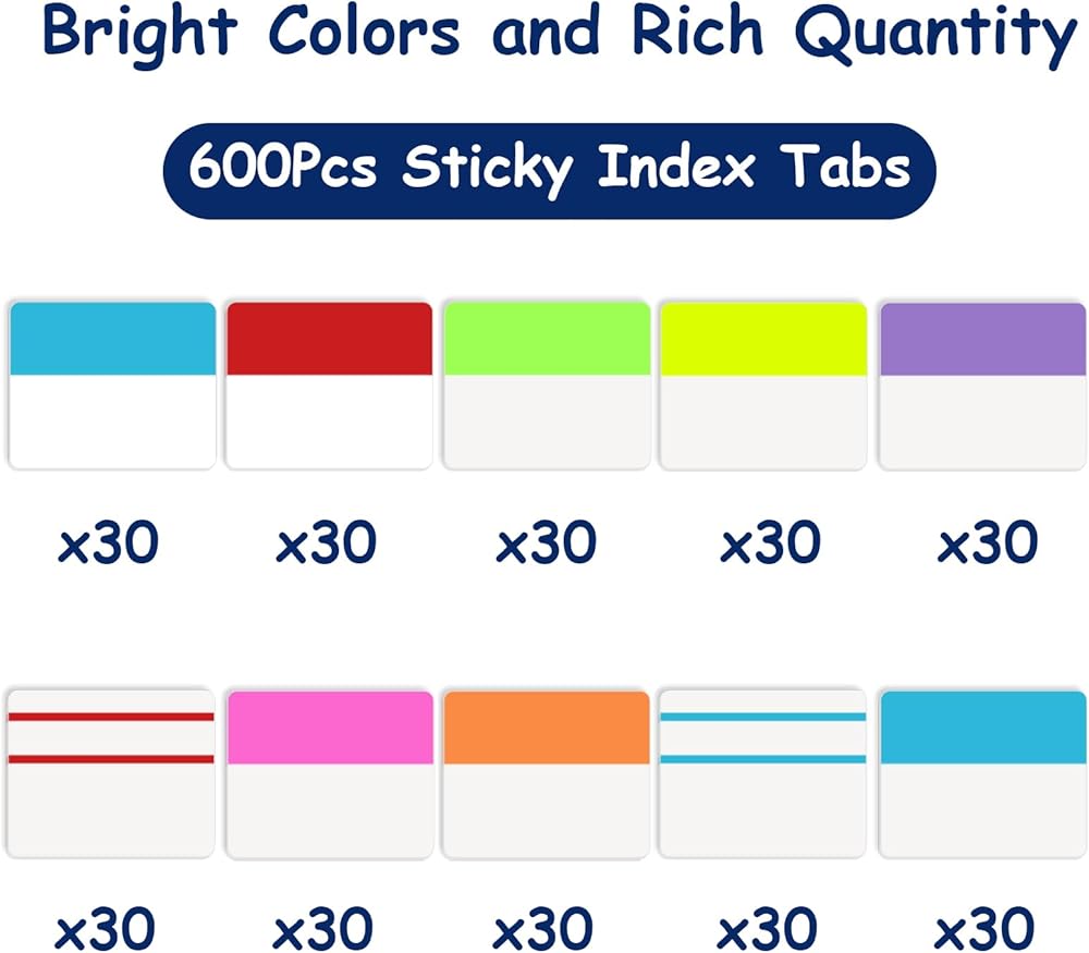 【Bright Colors and Rich Quantity】Colored sticky index tabs are small and easy to carry, can help you find and locate information you want quickly. You can sort your notes or files by different colors or by different markers that you write down. 600 pieces of colorful divider tabs are enough to use for a long time.