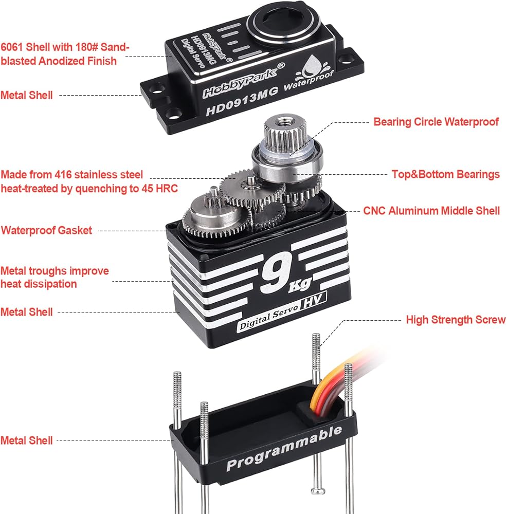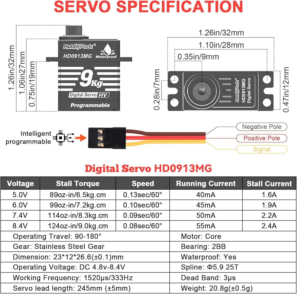 High Torque for Enhanced Control – The HobbyPark 9kg high-torque micro servo delivers powerful performance, offering superior control and responsiveness for RC crawlers, cars, planes, boats, and robotic applications.
