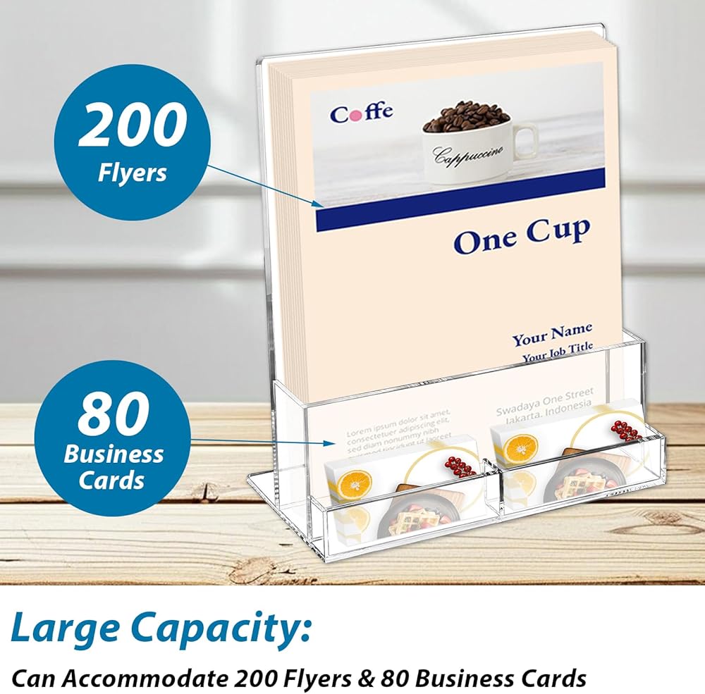 YAYODS 2 Pack Acrylic Brochure Holder 8.5 x 11 with Business Card Holder, Plastic Flyer Holder 8.5 x 11 Standing Pamphlet Holder Display Stand with Business Card Pocket for Magazine Booklets Menu Literature