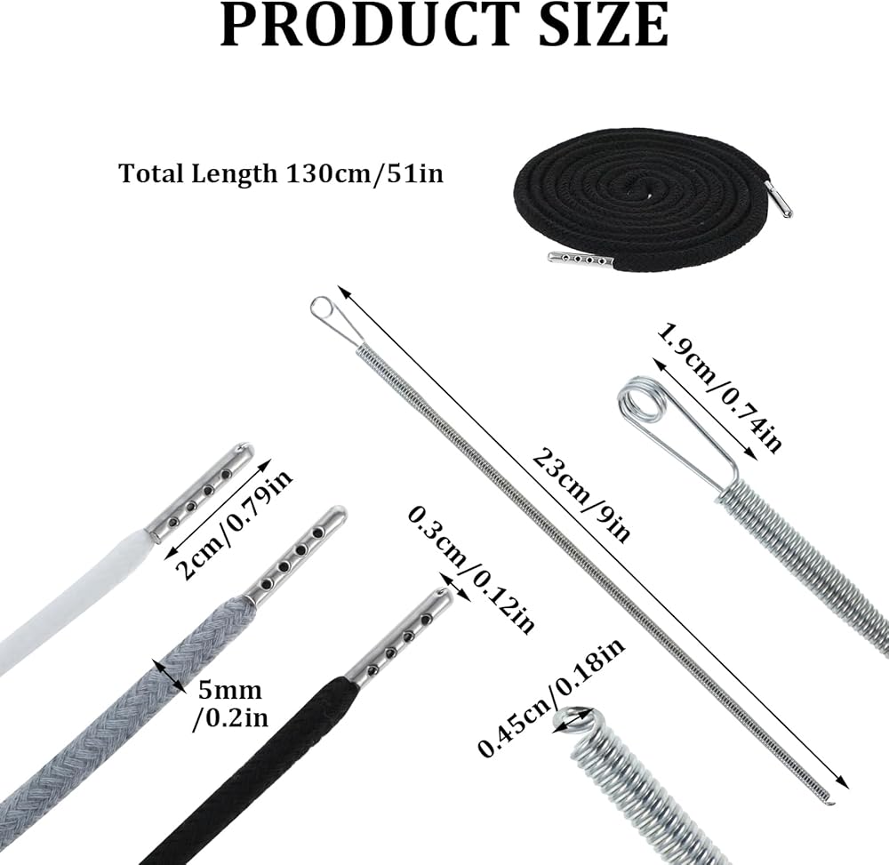 • 【Package Content】Contains 12 hoodie strings and 1 easy threader. Each rope is 130cm long, which is enough to meet the needs of most clothes. Draw string is available in three classic colors: black, white and gray. You can choose ropes of different colors according to your personal preferences or needs, making the clothes more personalized and more compatible
