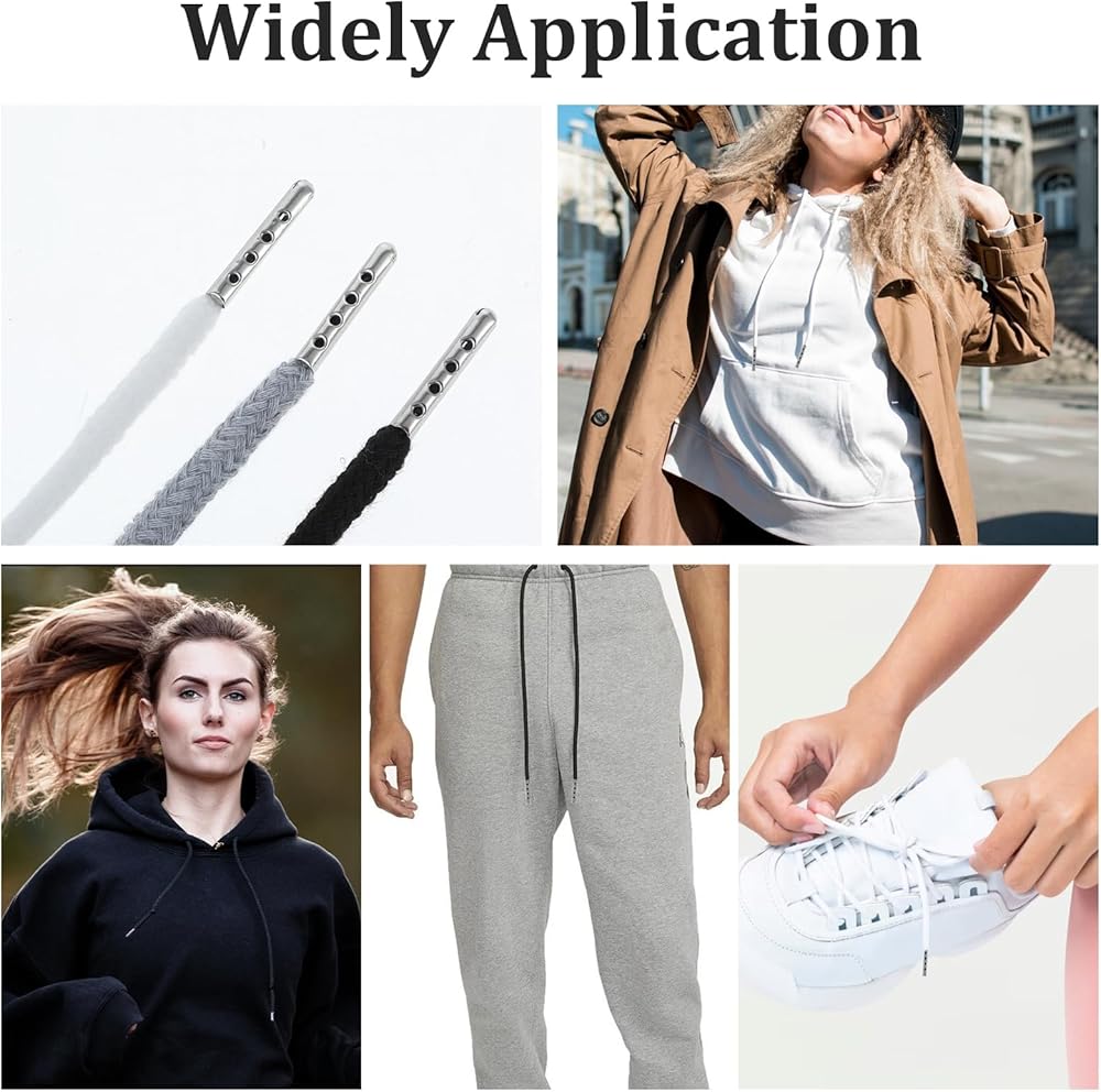 • 【Exquisite Craftsmanship】The hoodie string replacement adopts the carefully crafted metal sealing technology, and each rope is equipped with a sturdy metal head at the end. The metal sealing head can effectively prevent the elastic drawstring end from wearing or unraveling, ensuring that you will not encounter the trouble of the rope head spreading or derailing when using it