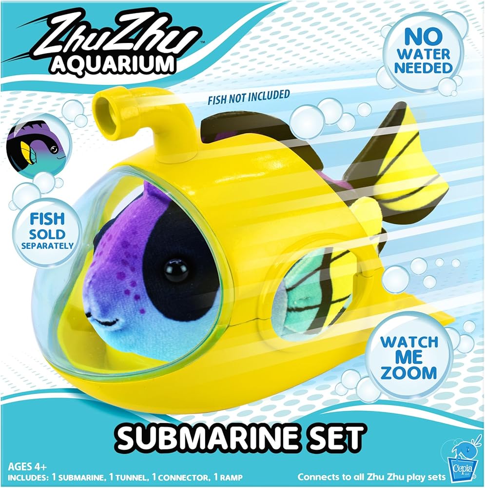 • WHAT'S IN THE BOX?: Includes 1 x submarine, 1 x tunnel, 1 x ramp and 1 x connector. Connects to all Zhu Zhu playsets. Fish sold separately.