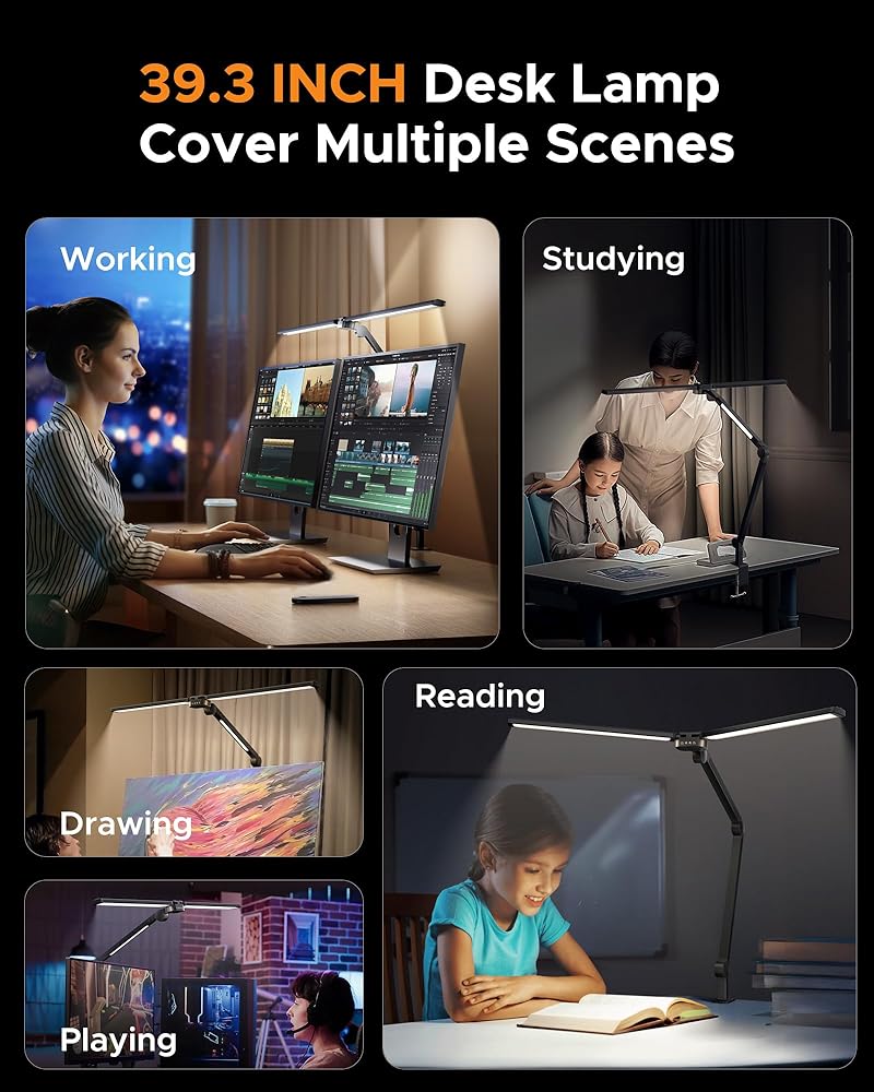 𝐄𝐲𝐞-𝐂𝐚𝐫𝐢𝐧𝐠: يتميز ضوء مكتب LED الخاص بنا بتضمين مؤشرات عرض عالية للألوان (CRI> 95) ، ويوفر ضوءًا ناعمًا ، دون وهج وميض ، يحمي رؤيتك بمرور الوقت. يركز التصميم المائل بنسبة 45 درجة على طاولتك ولوحة المفاتيح ، مما يقلل من انعكاسات الشاشة ويقلل من سلالة عينيك