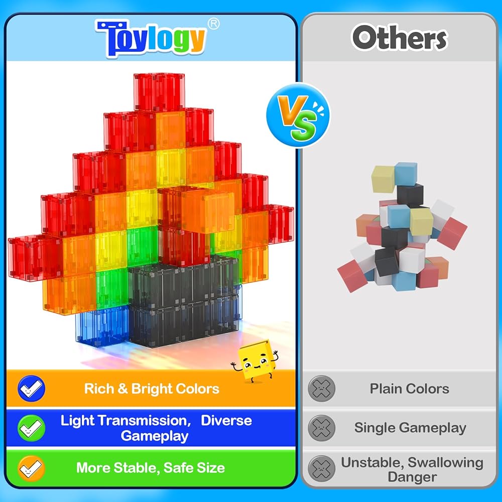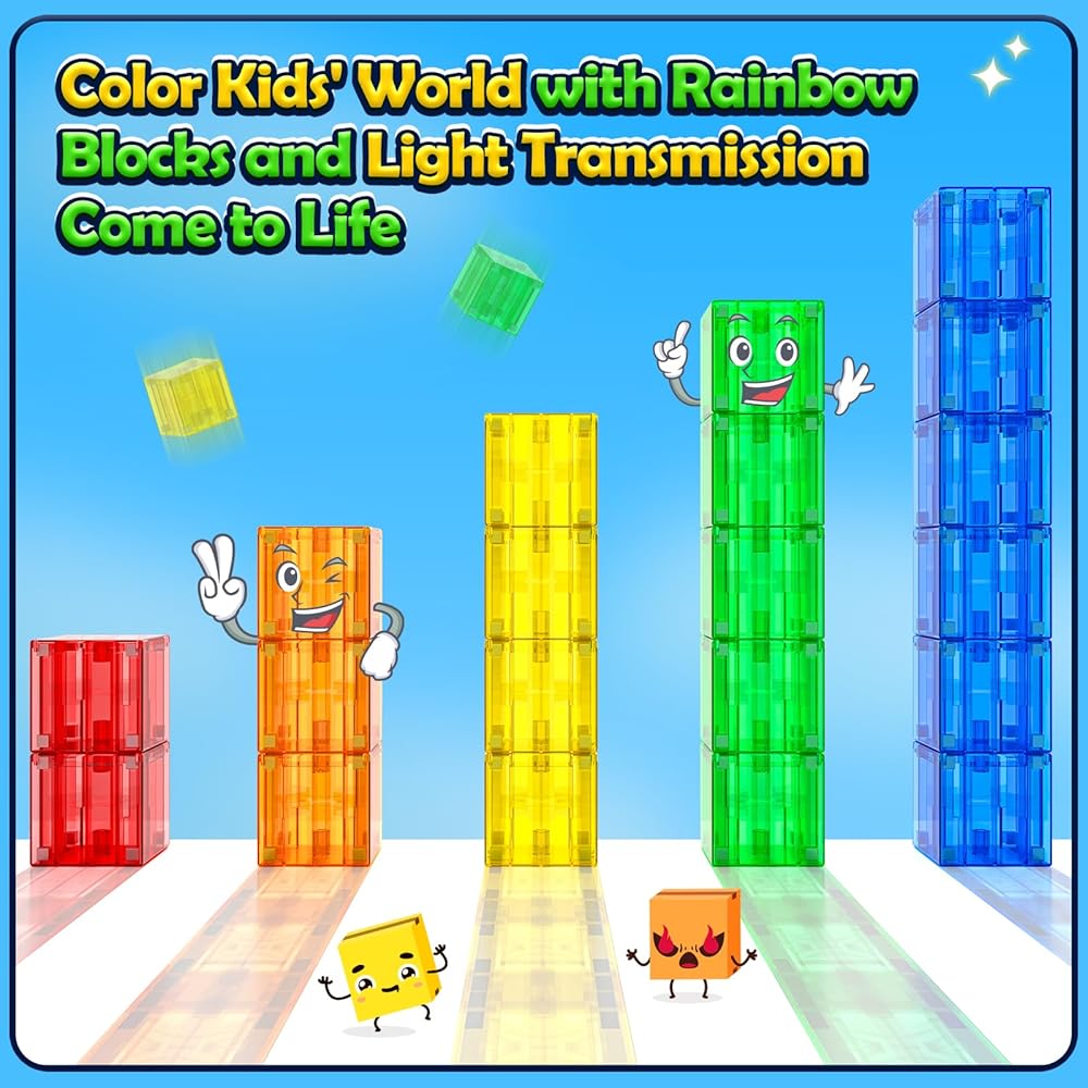 【كتل مغناطيس الألوان الشفافة】 بما في ذلك 7 ألوان كتل مغناطيسية ، وحقيبة تخزين وكتيب فكرة. Marvel من كتلنا الكريستالية المتوسطة ، مما يخلق انعكاسات وظلال مفتونة من شأنها أن تأسر الأطفال الذين تتراوح أعمارهم بين 3 و 8 سنوات ، مما يثير الإبداع مع بناء هياكل مبهرة تتوهج مع الخيال.