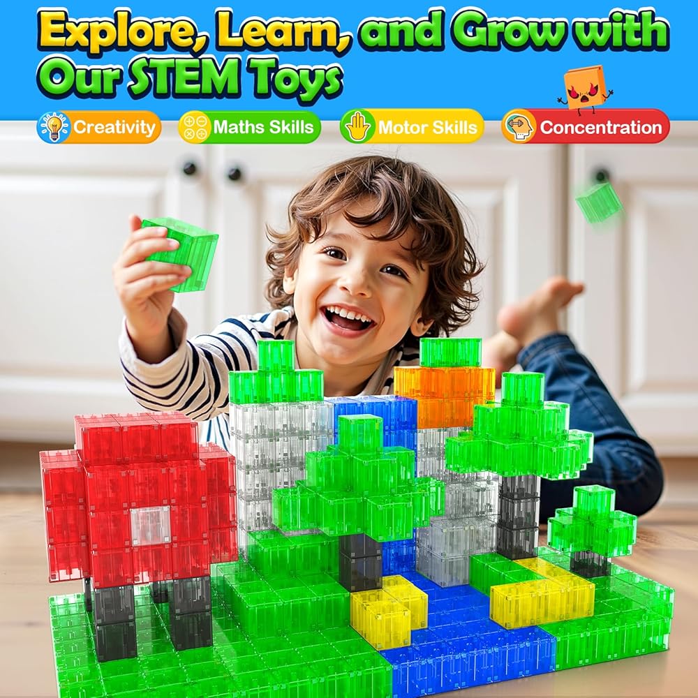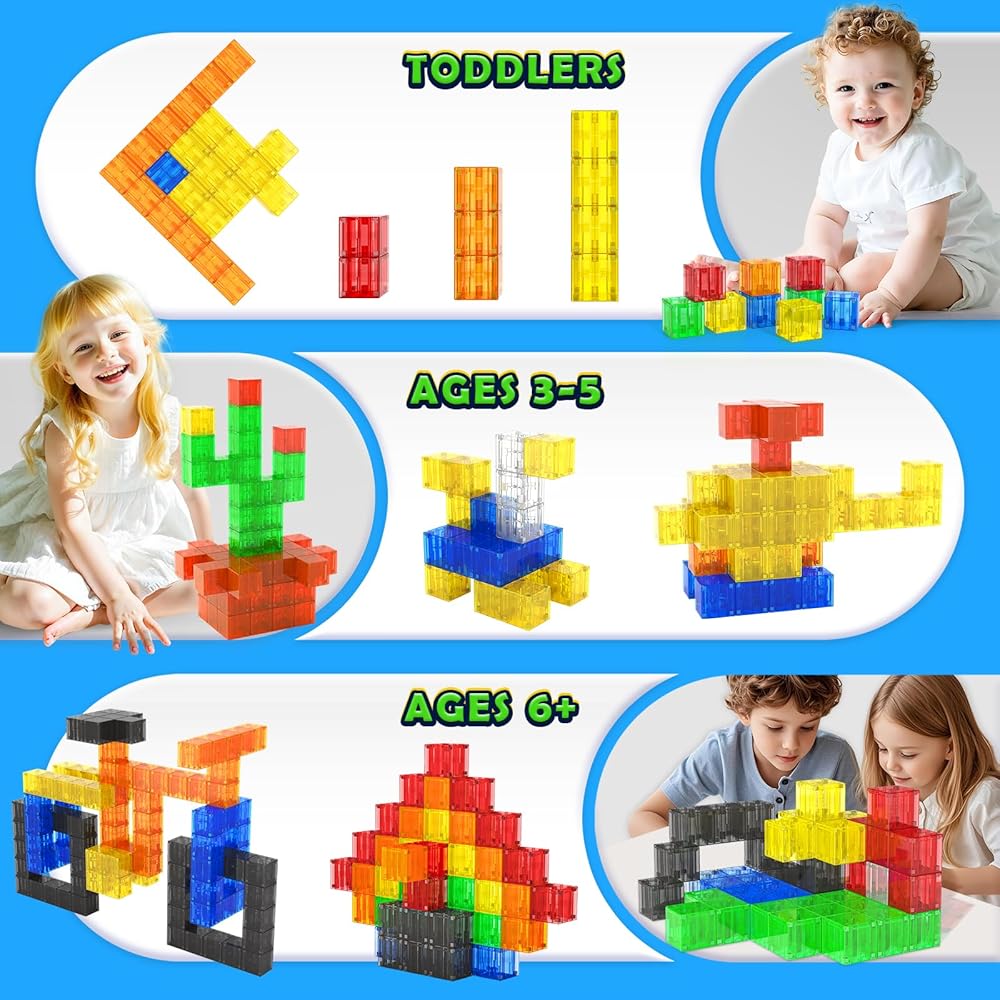 ألعاب الكتل المغناطيسية للأولاد والبنات الصغار البالغون من العمر 3 سنوات ، ألعاب Montessori Montessori للأطفال ، مبنيًا على Building Builds Transparent Builds Educational Learning Age 3-5 ، 4-8 ، 5-7
