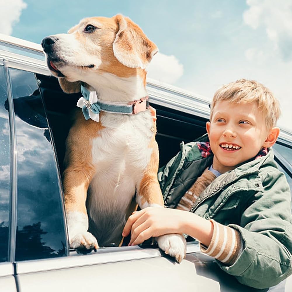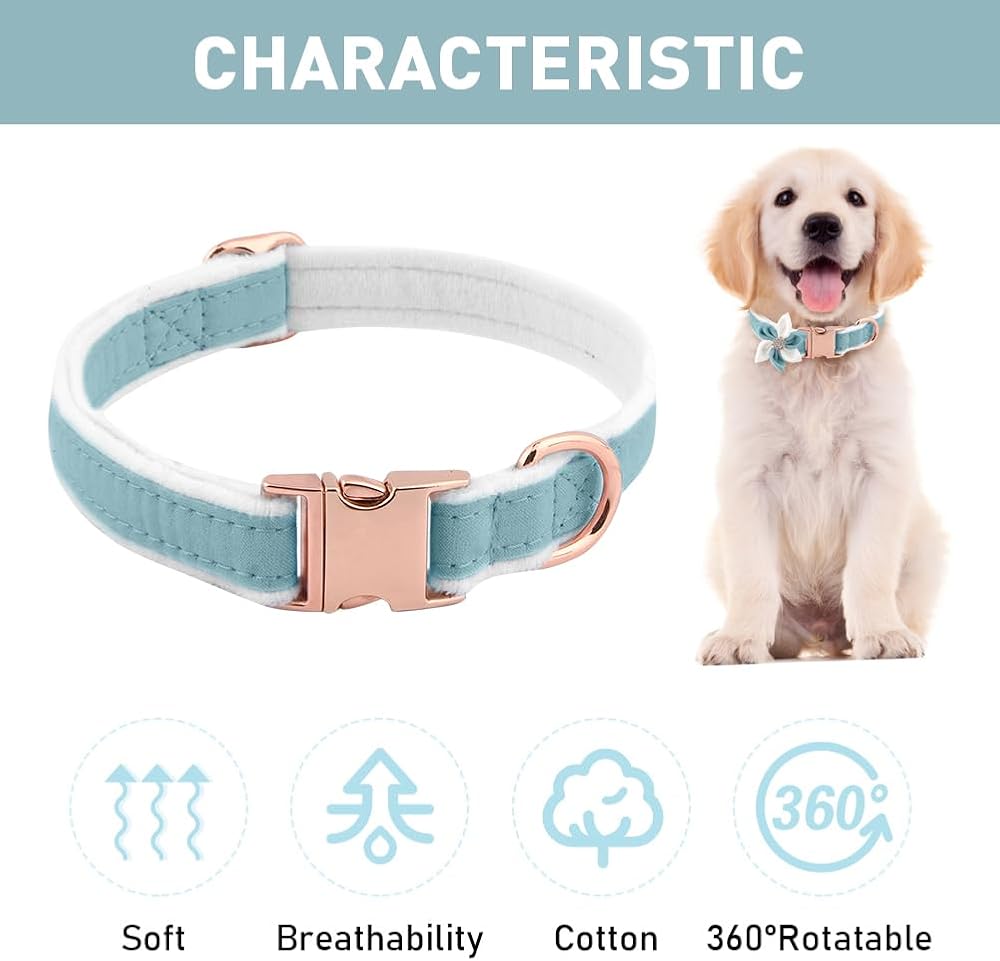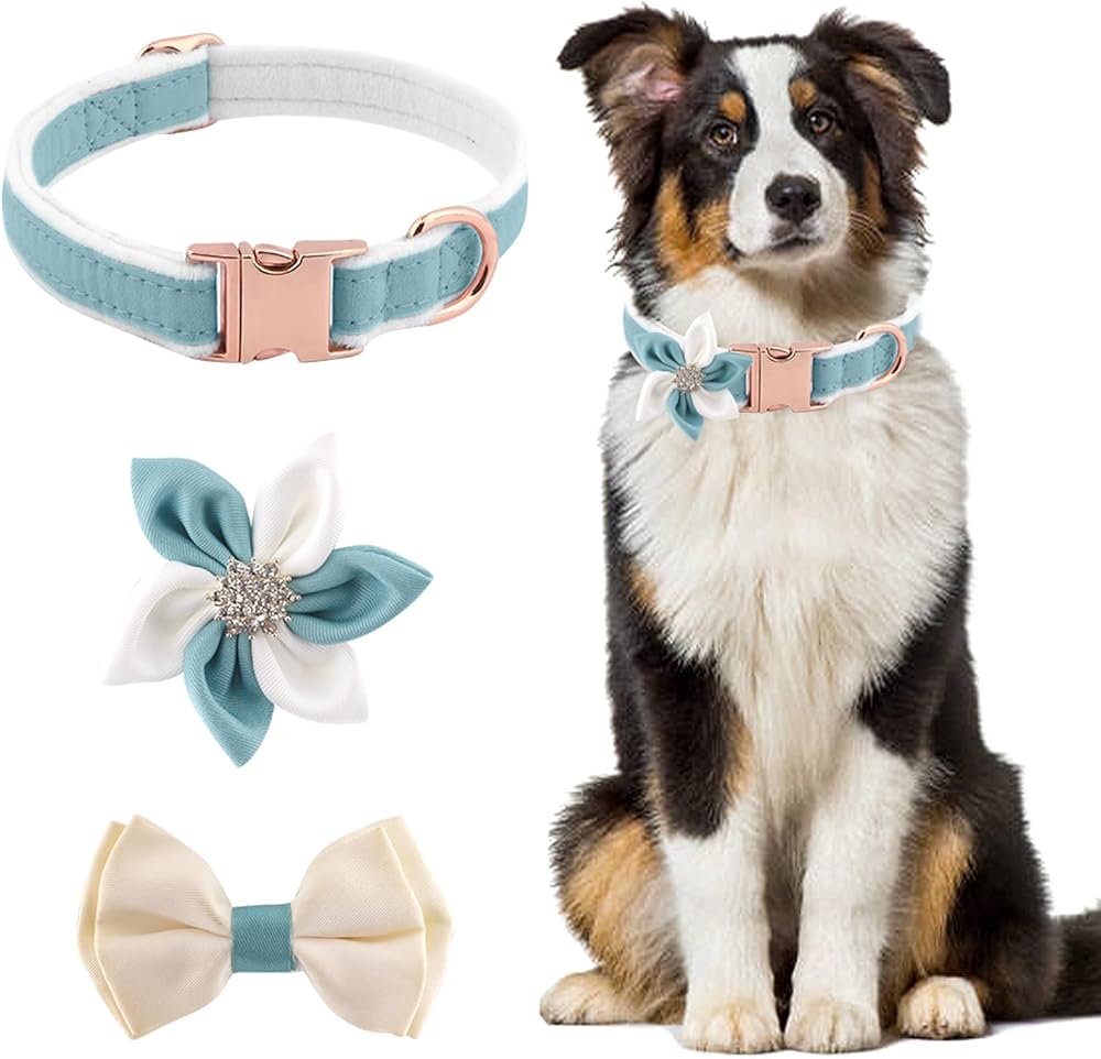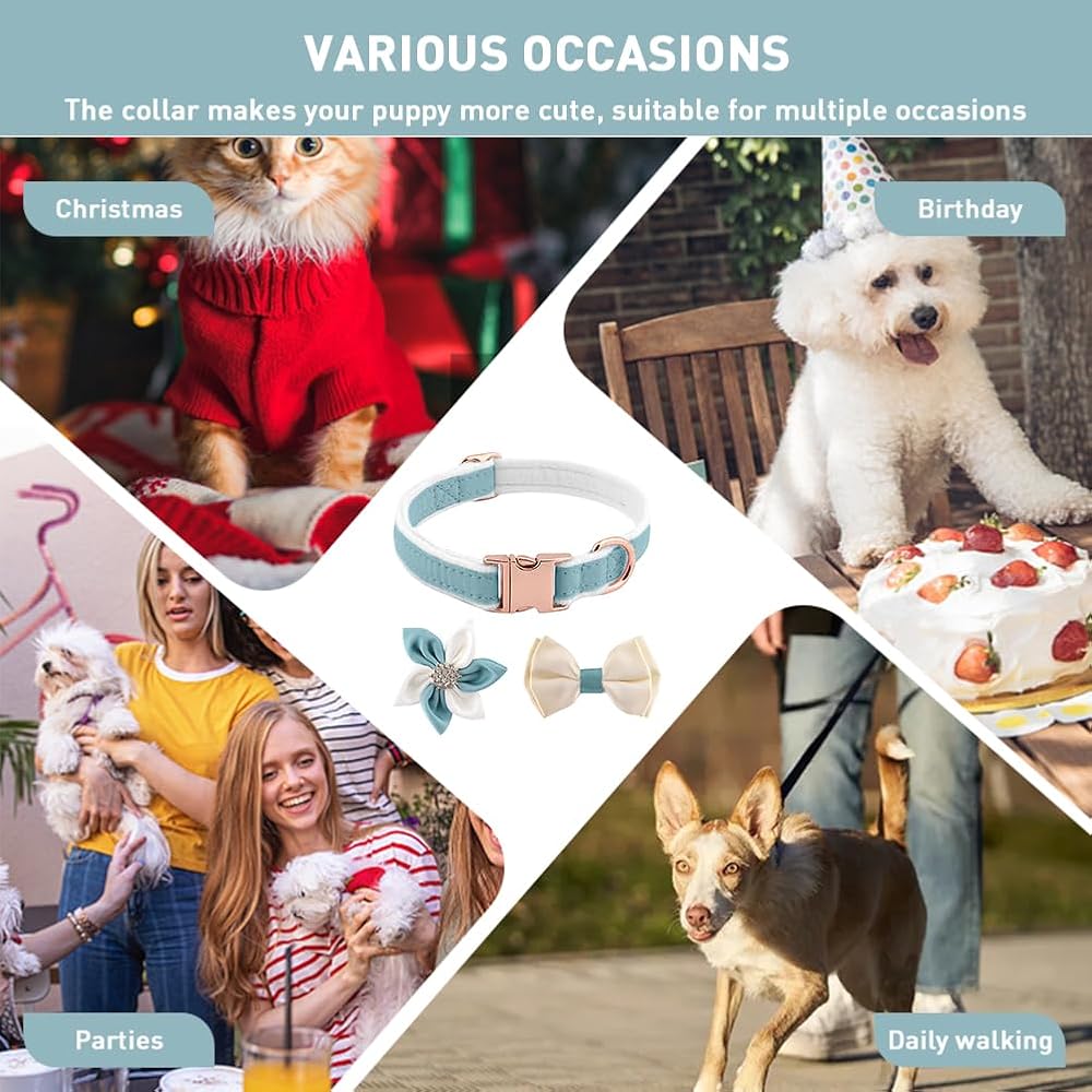 【SOFT MATERIAL】The dog collar, bowknot and flower tie are made of very soft velvet fabric, smooth and comfortable, will not hurt your pets, breathable, durable and sturdy, wear-resisatnt, not easy to damage, long service time.