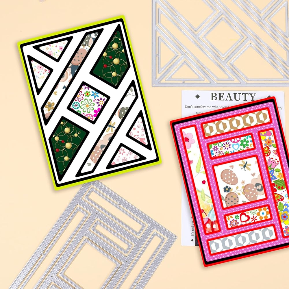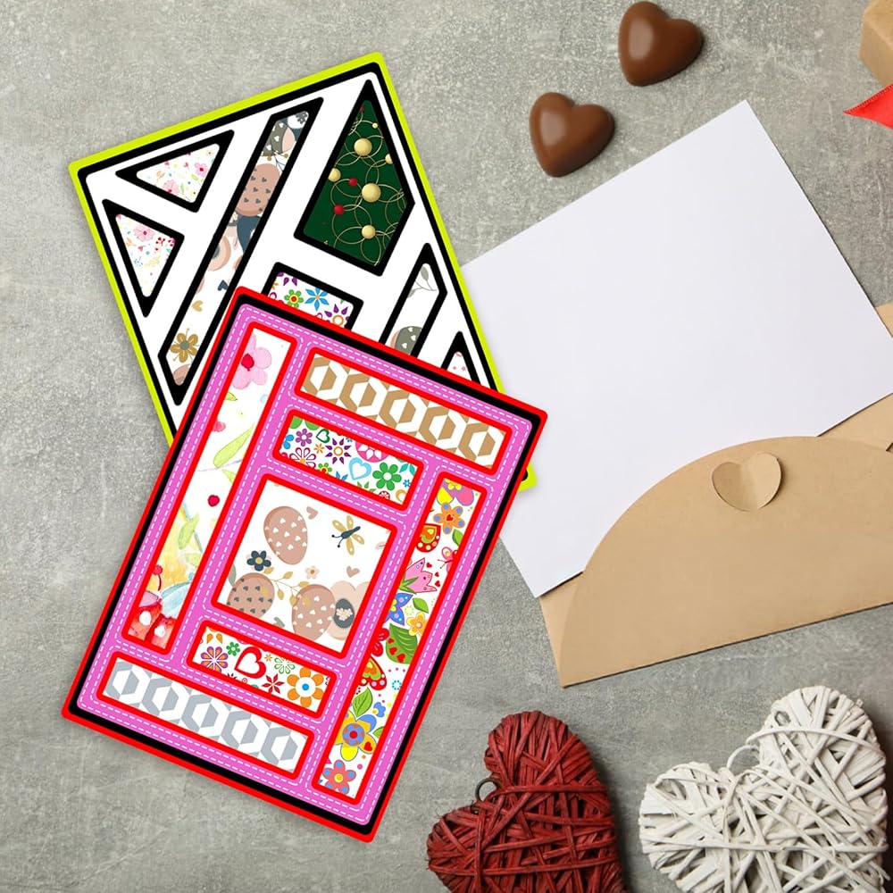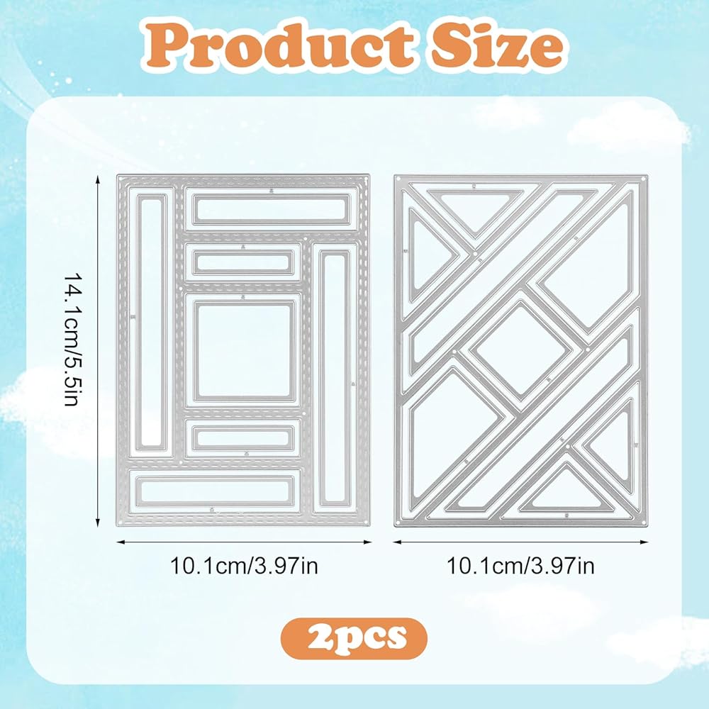 【Size Design】The size of the 2-pack die is: 5.5 × 3.97 × 0.06 inches, scrapbooking die-cutting is suitable for most cards. There are square and triangular dies respectively, and different metal die cuts shapes help you make special and personalized greeting cards