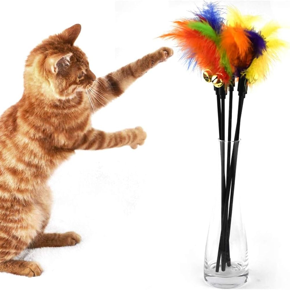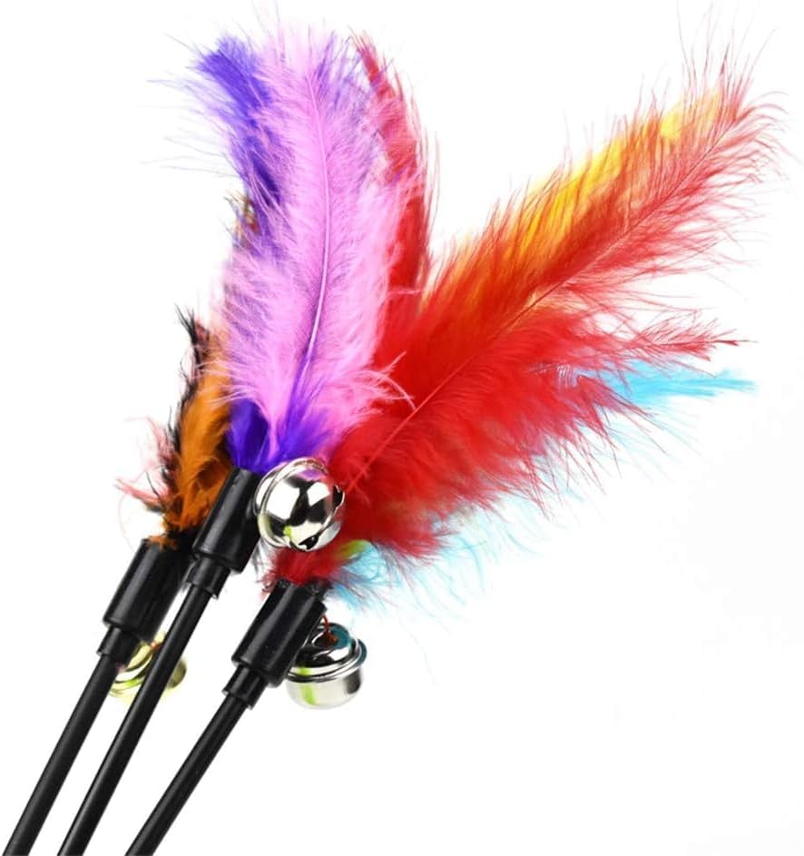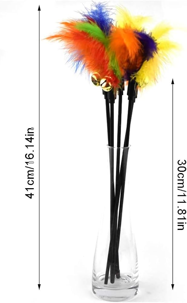 **Engaging Playtime**: This interactive cat wand toy features vibrant, colorful feathers designed to captivate and entertain your feline friends, providing hours of stimulating play.