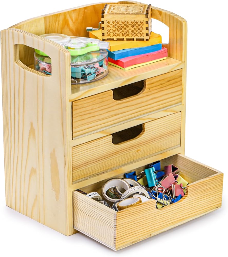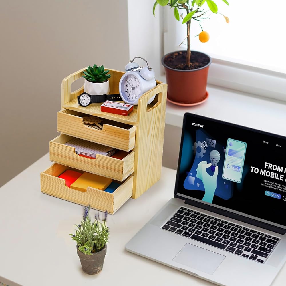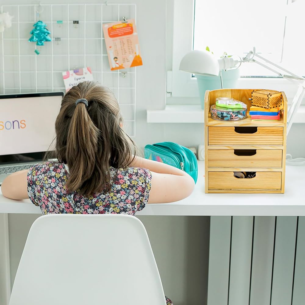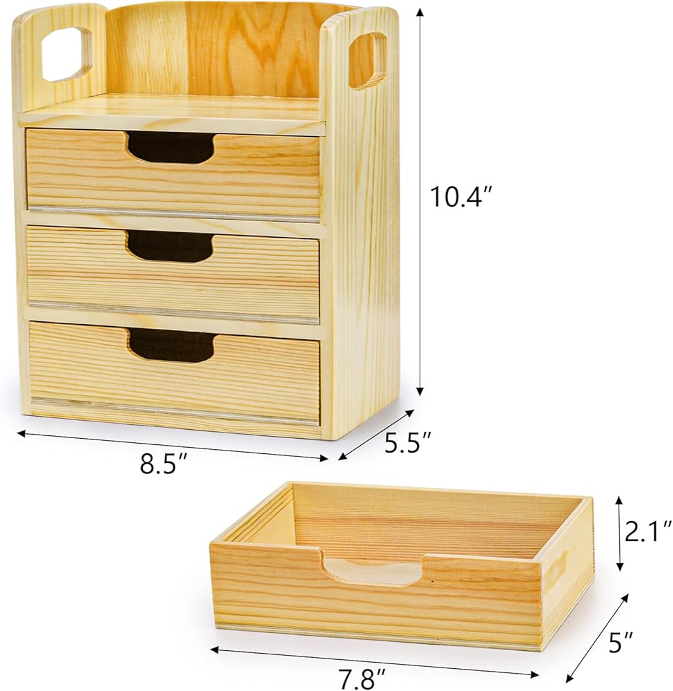 Hedume Wooden Desk Organizer مع 3 أدراج ، درج سطح المكتب مع مقبض ، صندوق تنظيم تخزين الطاولة للمكتب ، المنزل ، لوازم الاسمانات ، الغرور (لا مطلوب تجميع)