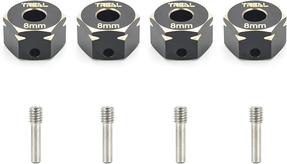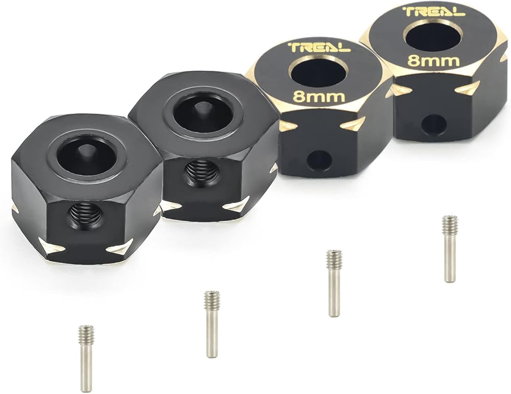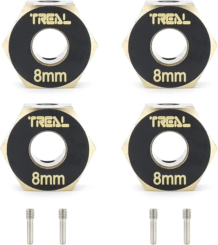 Treal Brass Extended Wheels Hex Hubs Adaptors 12 * 8mm (4) pcs for Axial Capra SCX10 III JLU Gladiator Bronco Base Camp