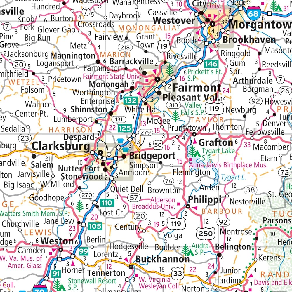 The durable and convenient West Viriginia Easy To Fold state map will take all the wear and tear your journey can dish out. The heavy-duty laminated design allows you to mark your route, make notes, then wipe the surface clean for further use. This is a must-have for navigation whether you're a state resident or just passing through.