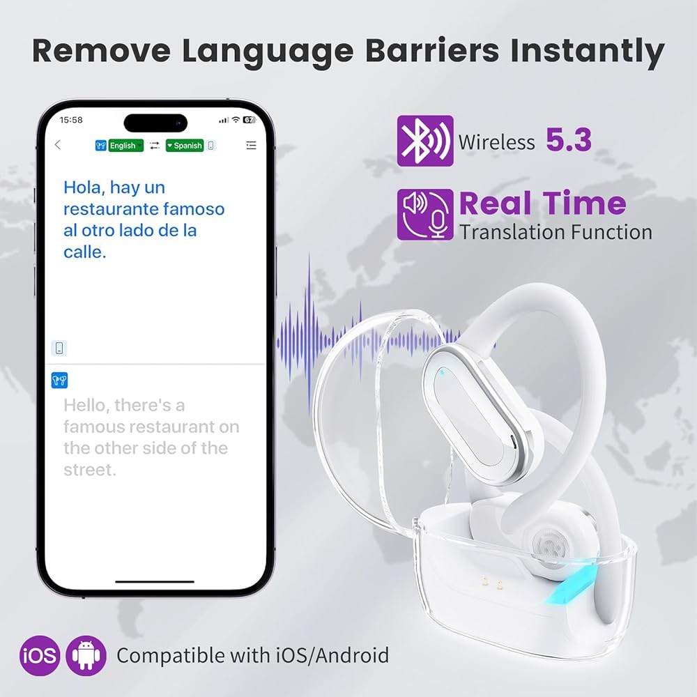 【دعم اللغة في الوقت الفعلي متعدد الاستخدامات】 يدعم سماعات الأذن المحمولة هذه ما يصل إلى 150 لغة. سواء أكان السفر أو التسوق أو الانخراط في الأعمال التجارية ، فإن سماعات الأذن لدينا توفر ترجمة في الوقت الفعلي ، وتحطيم حواجز اللغة دون عناء ، وجعل تجربة التواصل الخاصة بك أكثر ثراءً.