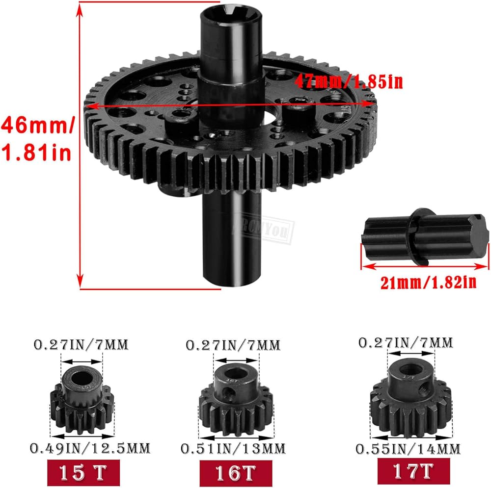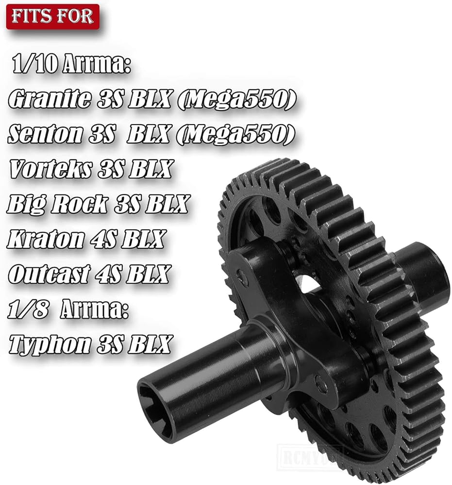 القابض المعدني ترس التروس المعدني 57T و Center Slider عمود عرضي و 15T/16T/17T ترقيات ترقية الترس جزء لـ Arrma 1/10 Granite/Senton/Big Rock/Vorteks 3S ، Kraton/Outcast 4S ، 1/8 Typhon 3S ، Black ، Black