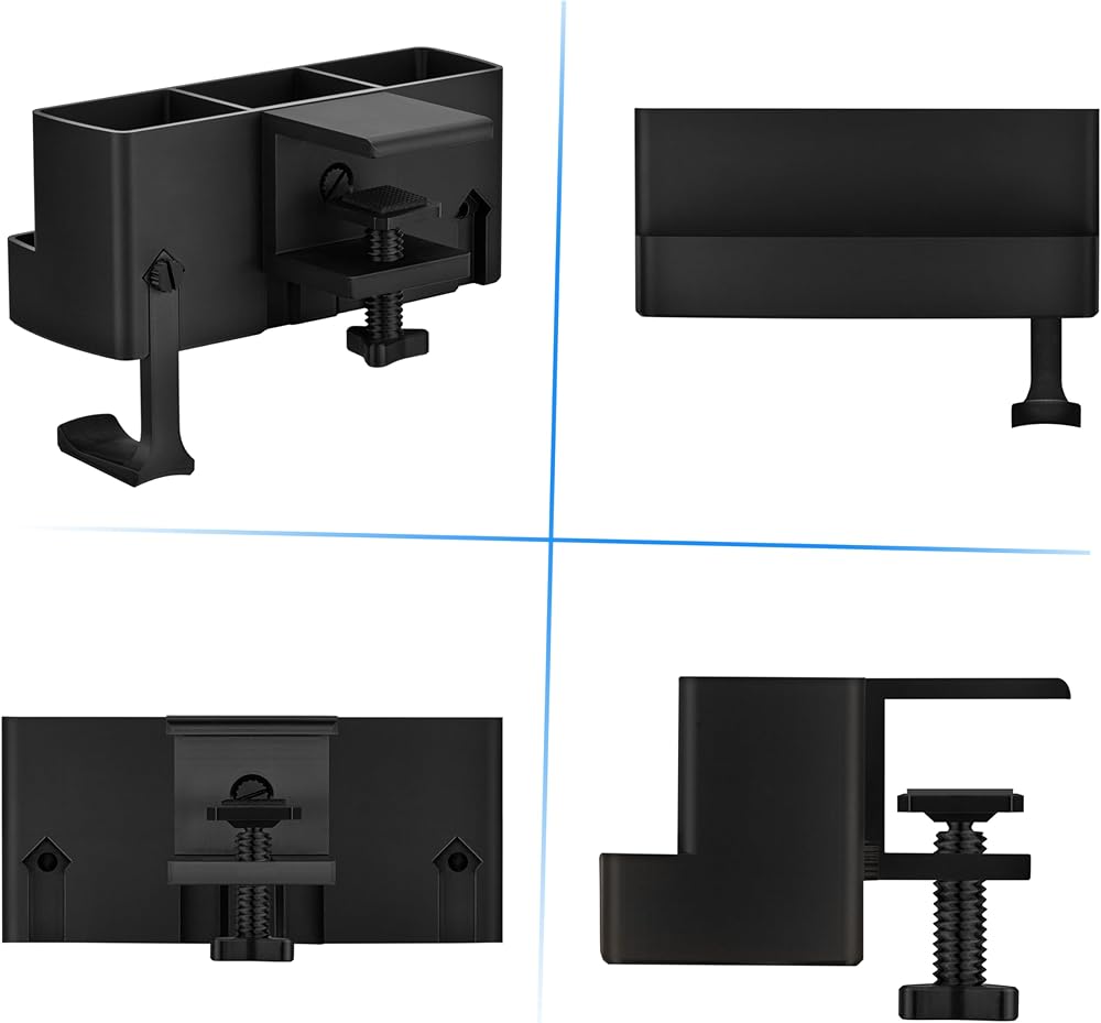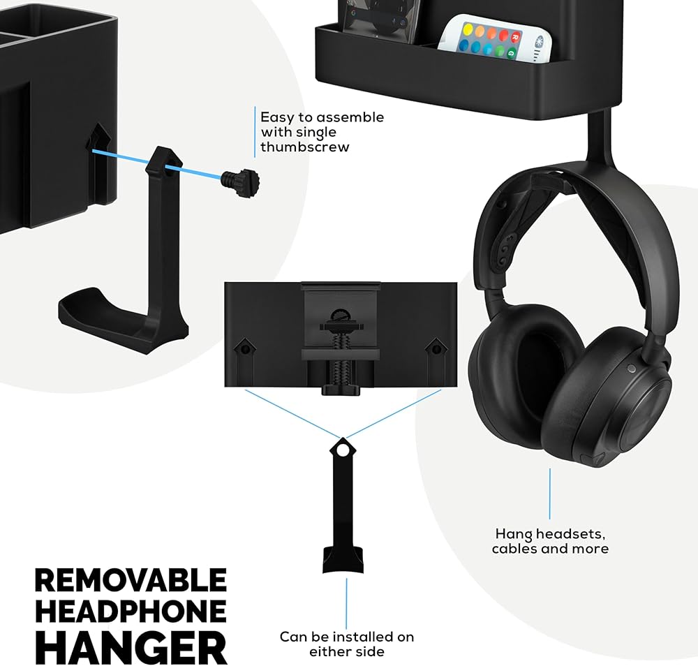 شماعات سماعة الرأس القابلة للفصل: يوفر شماعات سماعة الرأس القابلة للفصل مكانًا مناسبًا لتخزين سماعات الرأس ، مما يضمن أنها في متناول اليد دائمًا وعلقها بدقة عندما لا تكون قيد الاستخدام. مثالي للحفاظ على الكابلات خالية من التشابك ومكتبك تبدو نظيفة.