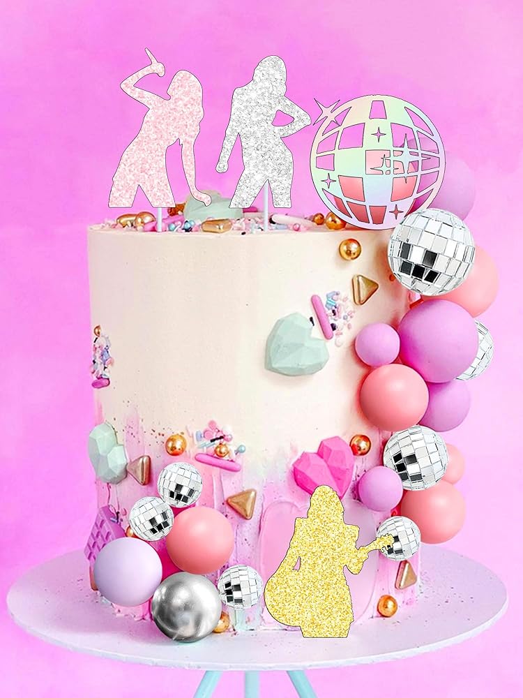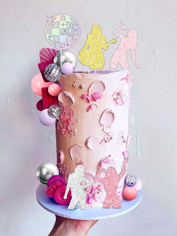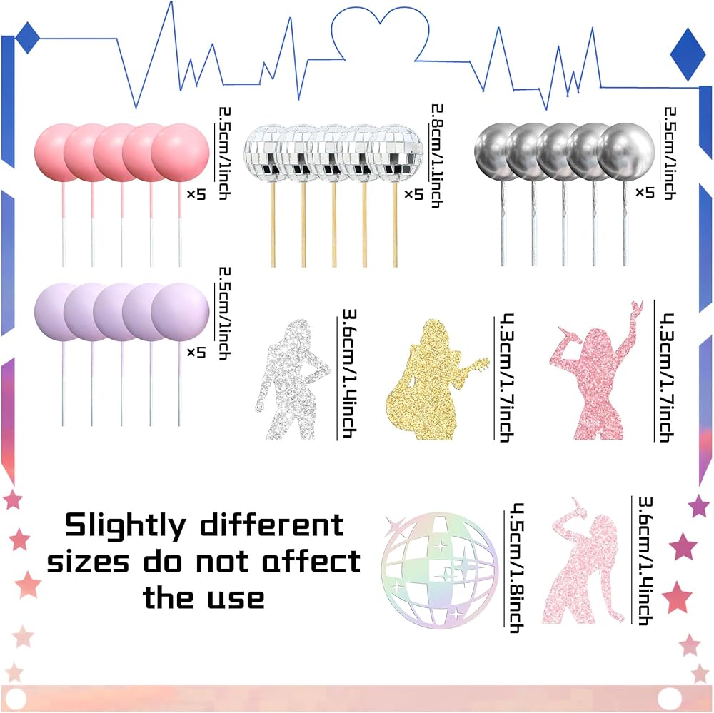 [محتوى الحزمة]: تتضمن كعكة عيد ميلاد المغني هذه الصورة الظلية 4 × المغني ، و 1 × تزيين بريق ، و 5 × كرات وردية ، و 5 × كرات ديسكو ، و 5 × كرات فضية ، و 5 × كرات أرجوانية ولا داعي للقلق بشأن الآثار الصحية لاستخدامه كزخرفة الكيك ، ويمكن إعادة استخدامها.