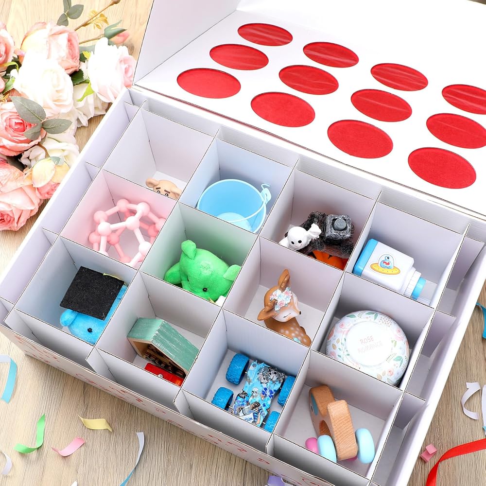 • فسيحة وخفيفة الوزن: قياس عند 16.93 × 11.42 × 5.51 بوصة/ 43 × 29 × 14 سم ، يقدم صندوق لكمة جائزة عيد الحب 12 مقصورة لتخزين جميع المكافآت التي اخترتها ؛ ضوء بما يكفي للمرور ، صندوق جوائزنا لمستهلكين في الفصول الدراسية في المرح بدون متاعب