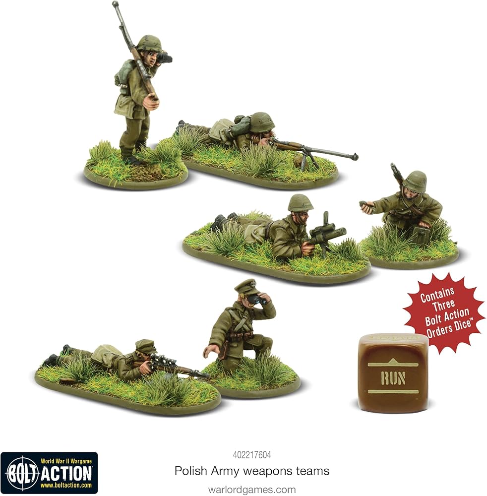 • Contains three Bolt Action Order Dice and the following Warlord Resin PlusTM figures: 2-man Light Mortar team 2-man Sniper team 2-man Anti-tank rifle team
