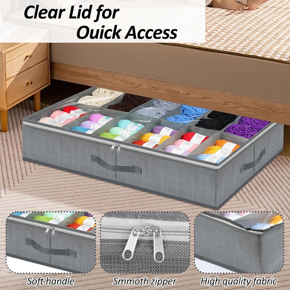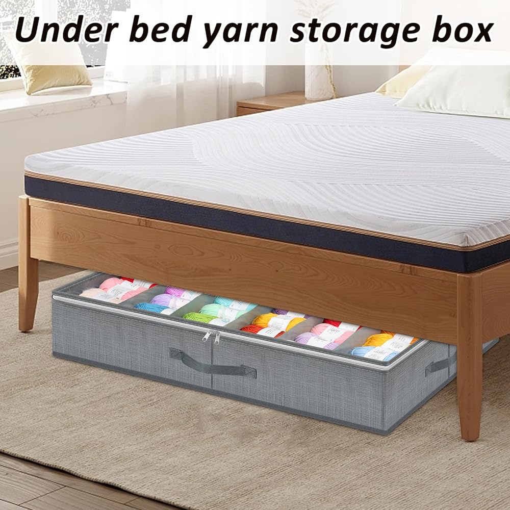 Safe and Reliable Material: The underbed knitting organizer is made of nonwoven and transparent PVC and fabric material, tear-resistant, reliable and durable, waterproof and dustproof, odorless and non-toxic. Space-saving storage with under-bed organizers. Transparent PVC large knitting yarns organized appearance allows you to quickly find what you need, saving time wasted rummaging back and forth.