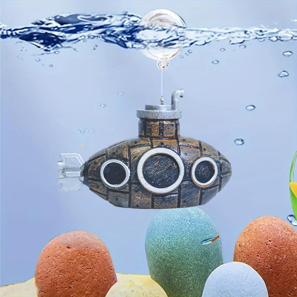 【DURABLE MATERIAL】The fake submarine is made of quality and durable resin material, no harm to fish tanks or swimming pools. Hand-painted and not easy to fade, unique shapes and vivid colors.