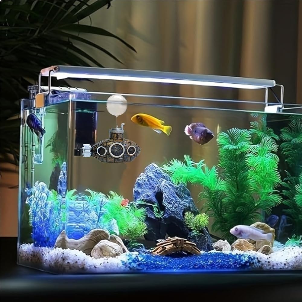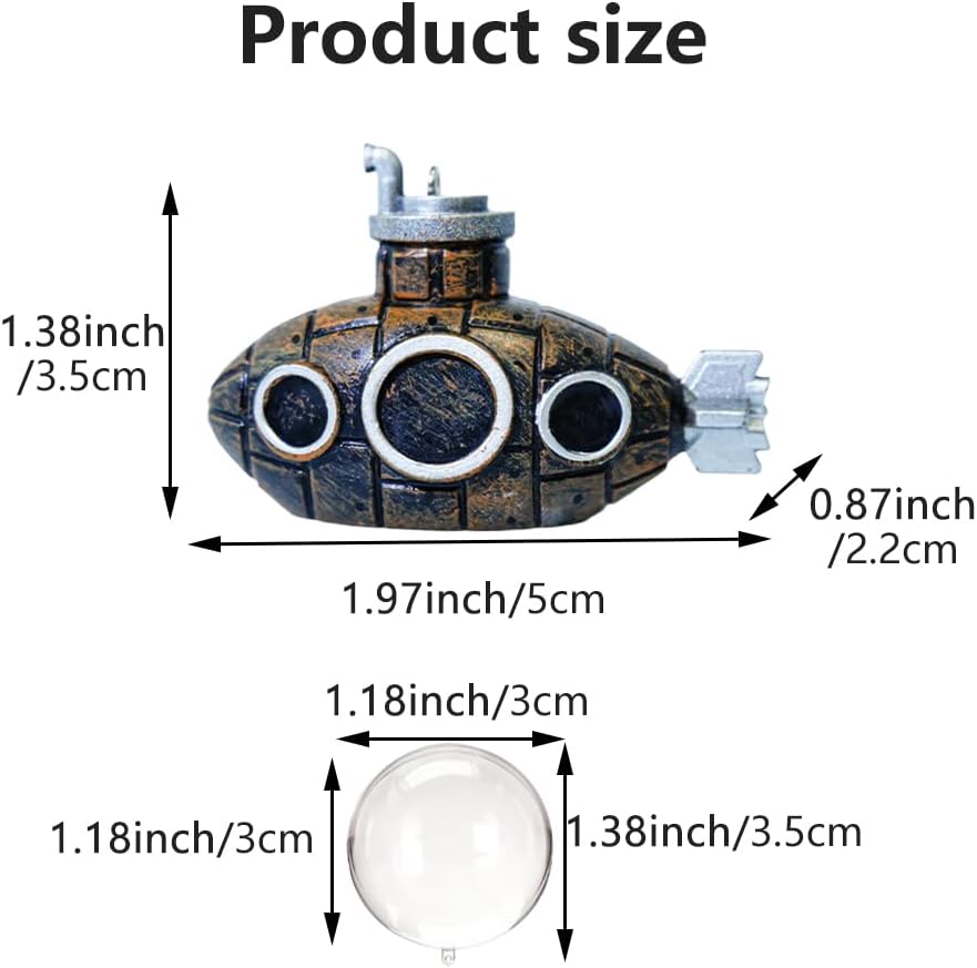 【SIZE DETAILS】(L x W x H) fake submarine 5 x 2.2 x 3.5cm/1.97 x 0.87 x 1.38inch, ball 3 x 3 x 3.5cm/1.18 x 1.18 x 1.38inch. Suitable for most fish tanks and aquariums. Great companions for your fish.