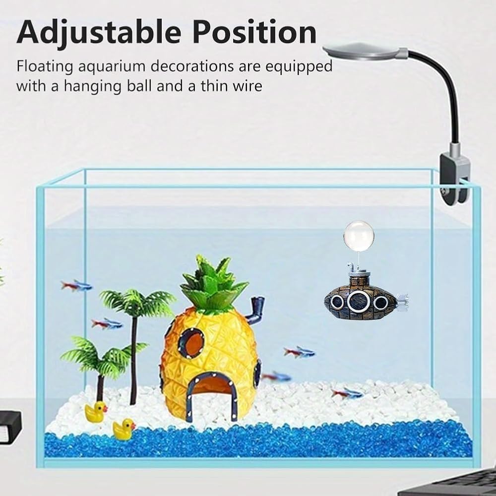 【ADJUSTABLE POSITION】Floating aquarium decorations are equipped with a hanging ball and a thin wire. The diving position of the submarine can be adjusted according to the length of the fishing line. The float can be opened.
