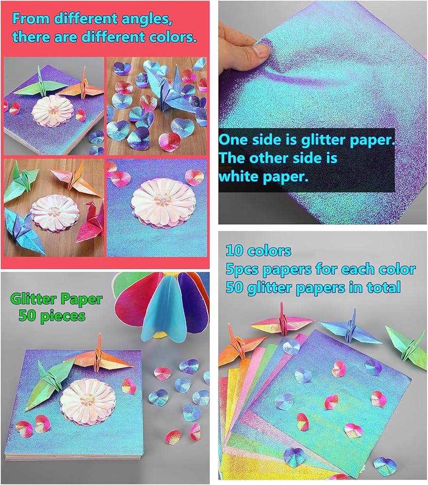 YOFAN Glitter Paper, 50 Sheets 10 Colors Creative Shimmer Sparkly Paper Thin Craft Cardstock Paper for DIY Gift Box Wrapping Birthday Party Decor Scrapbook , nice for DIY projects or other occassions