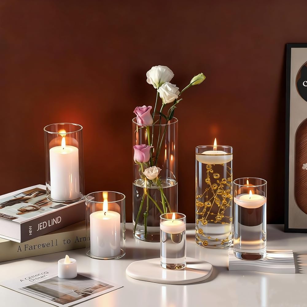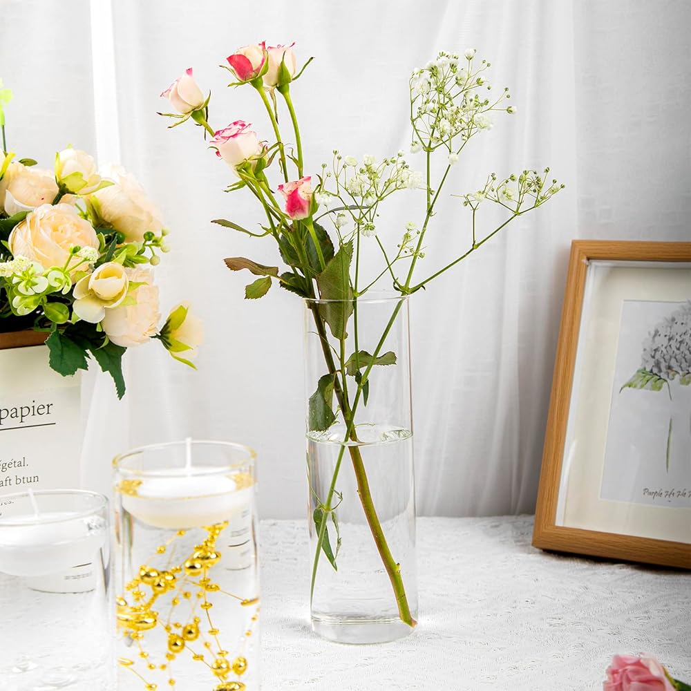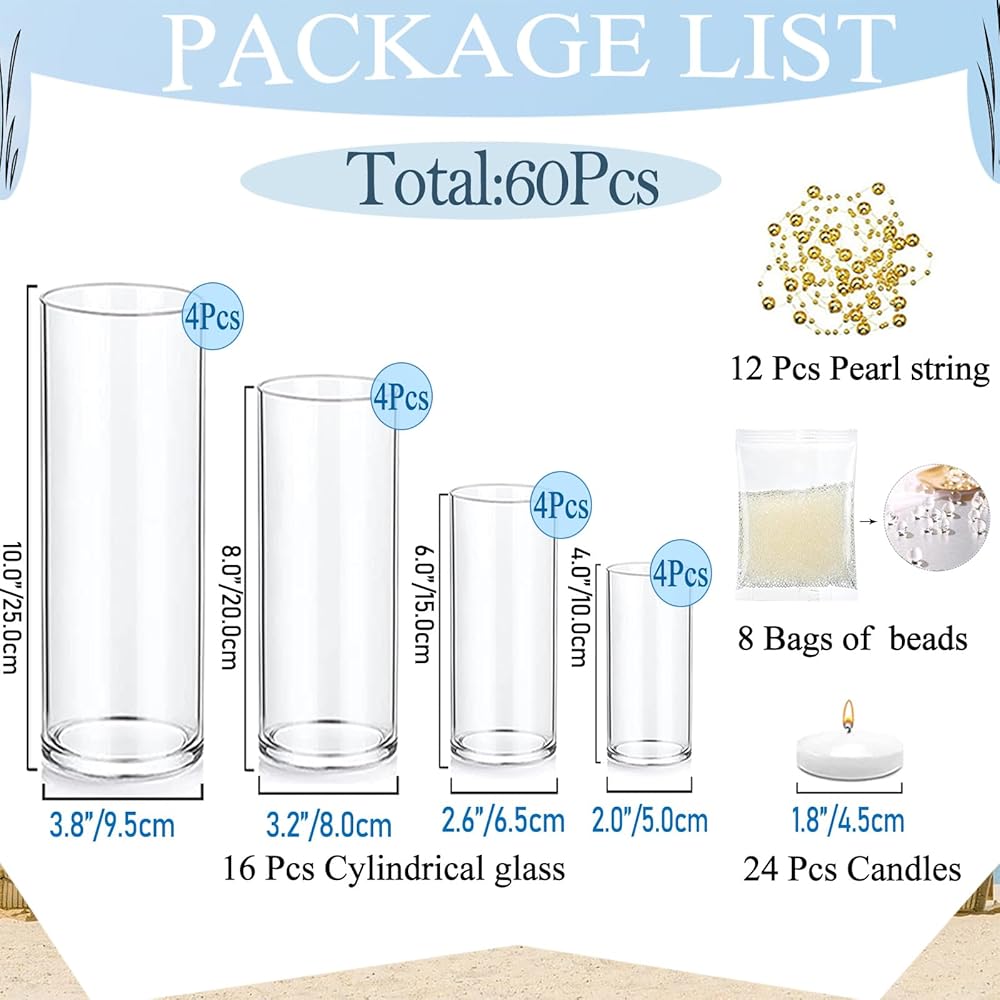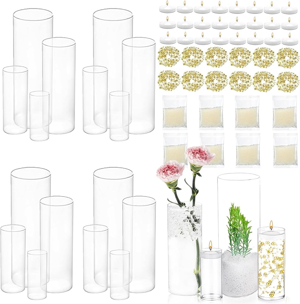 • مزهريات متعددة الاستخدامات للقطاعات المركزية: تحتوي المجموعة على 16 جهازًا من المزهريات الزجاجية الأسطوانية ، و 24 جهازًا من الشموع العائمة البيضاء ، و 8 حزم من حبات حشو المزهرية الواضحة من 10000 جهاز كمبيوتر و 12 PCS سلسلة لؤلؤة اصطناعية ، يمكن أن تلبي احتياجاتك المختلفة ، مثل: ترتيب الزهور ، حاملي الشموع ، ديكور المنزل ، زفاف