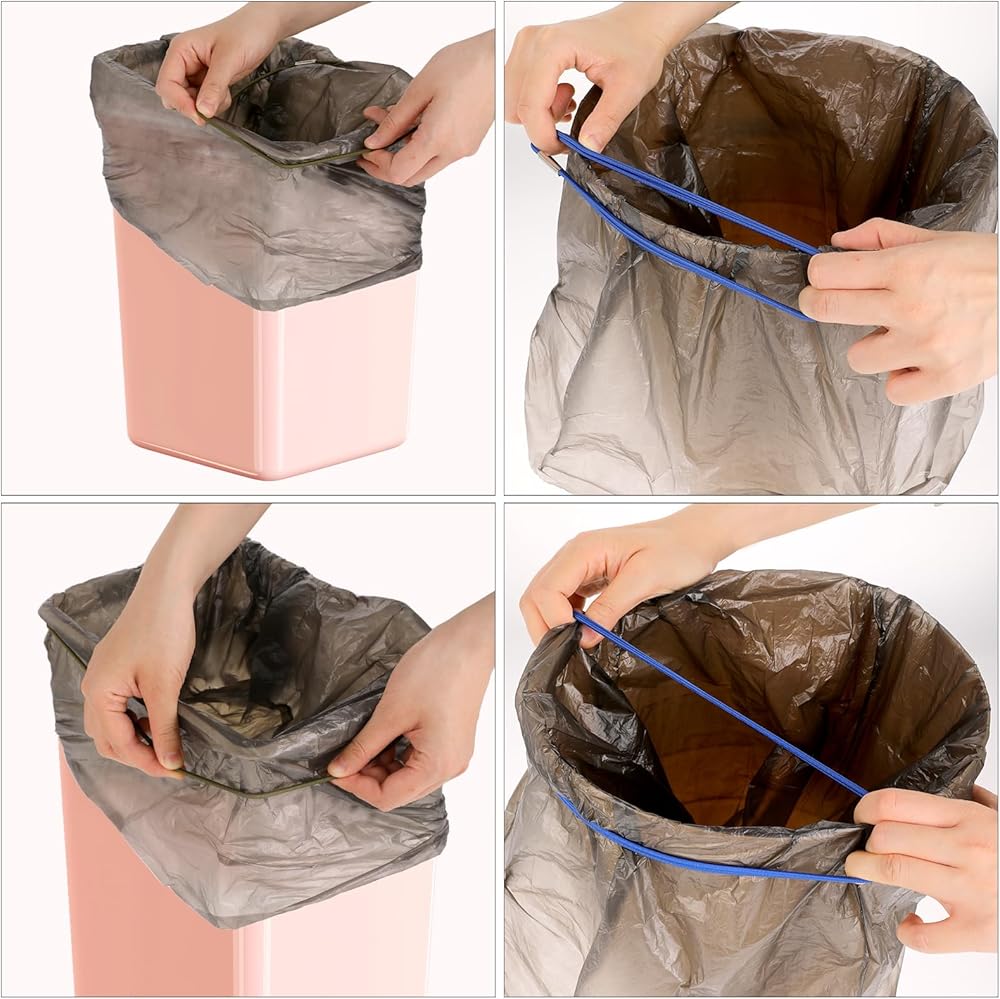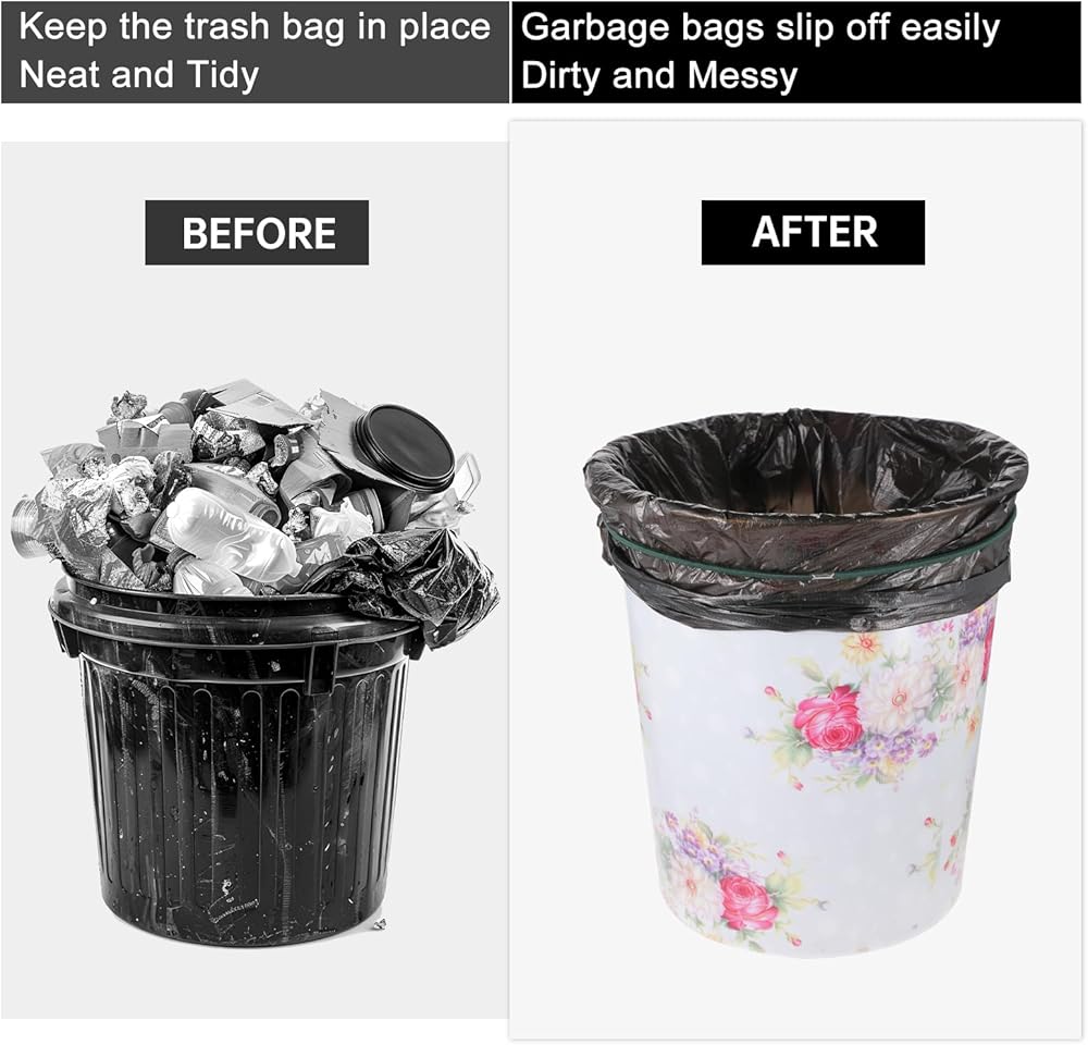 Stretchable Fit: The trash bag elastic band measures 2.3 feet in length, expanding up to 4.7 feet, making them compatible with 13 to 30-gallon trash cans, providing a secure, adjustable fit that accommodates a variety of container sizes.