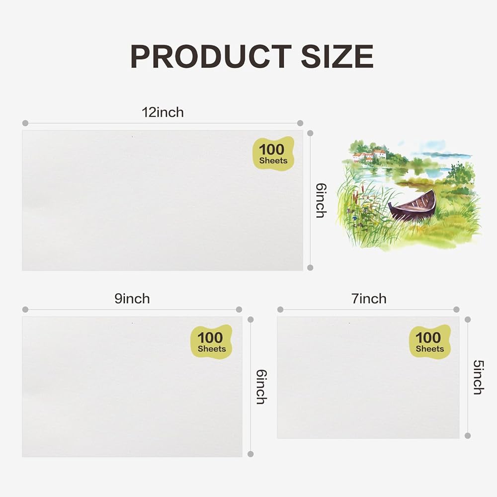 Tounalker 300 ورقة 3 أحجام الورق المائي بألوان مائية غائبة أبيض بارد الصحافة الورق ورقة ملونة لطيور فنان الطالب الرسم بداية ، 5 × 7 بوصة ، 6 × 9 بوصات ، 6 × 12 بوصة