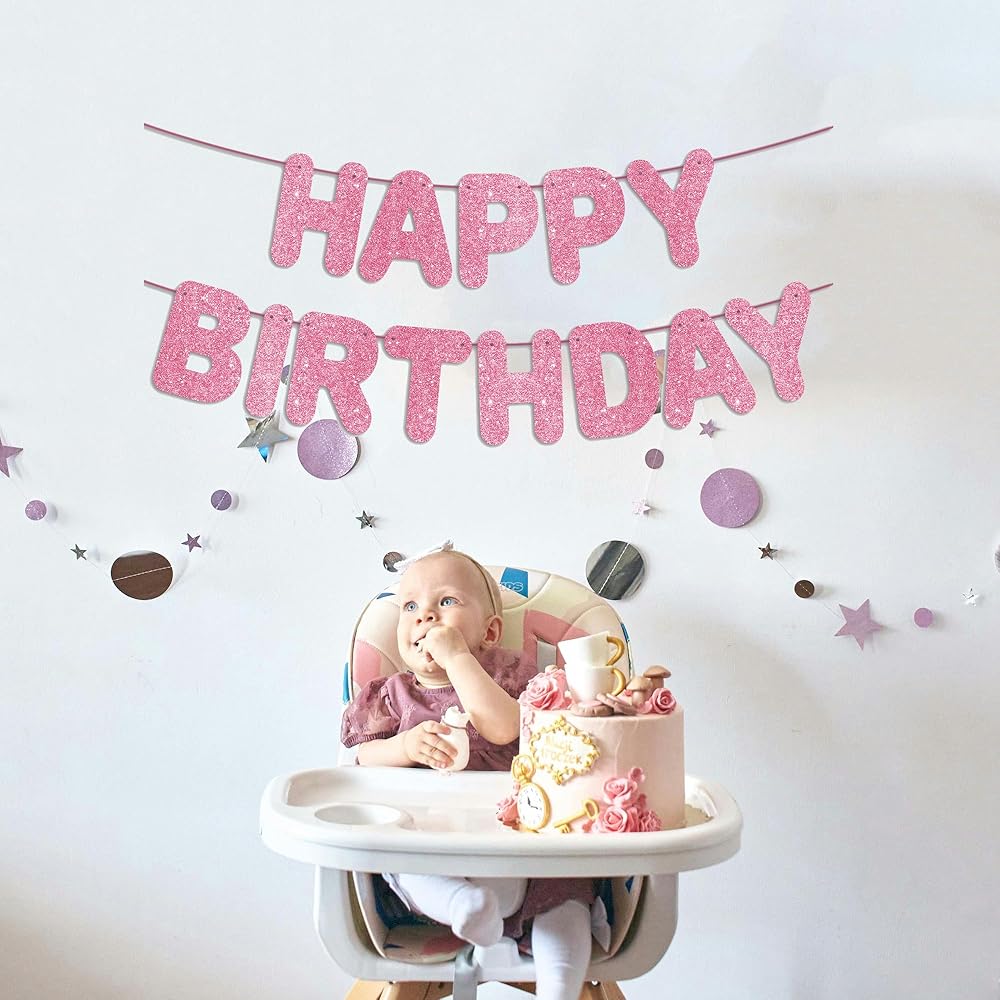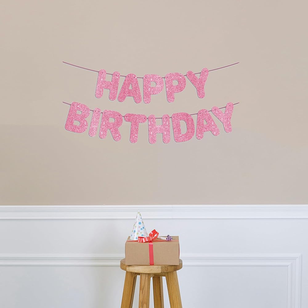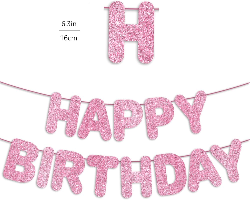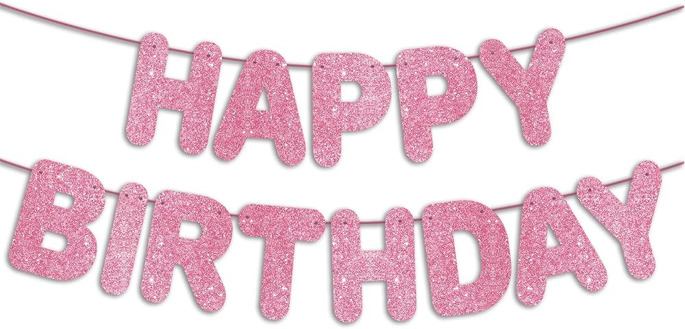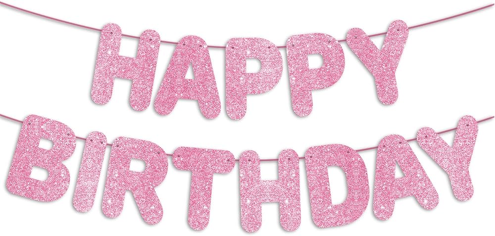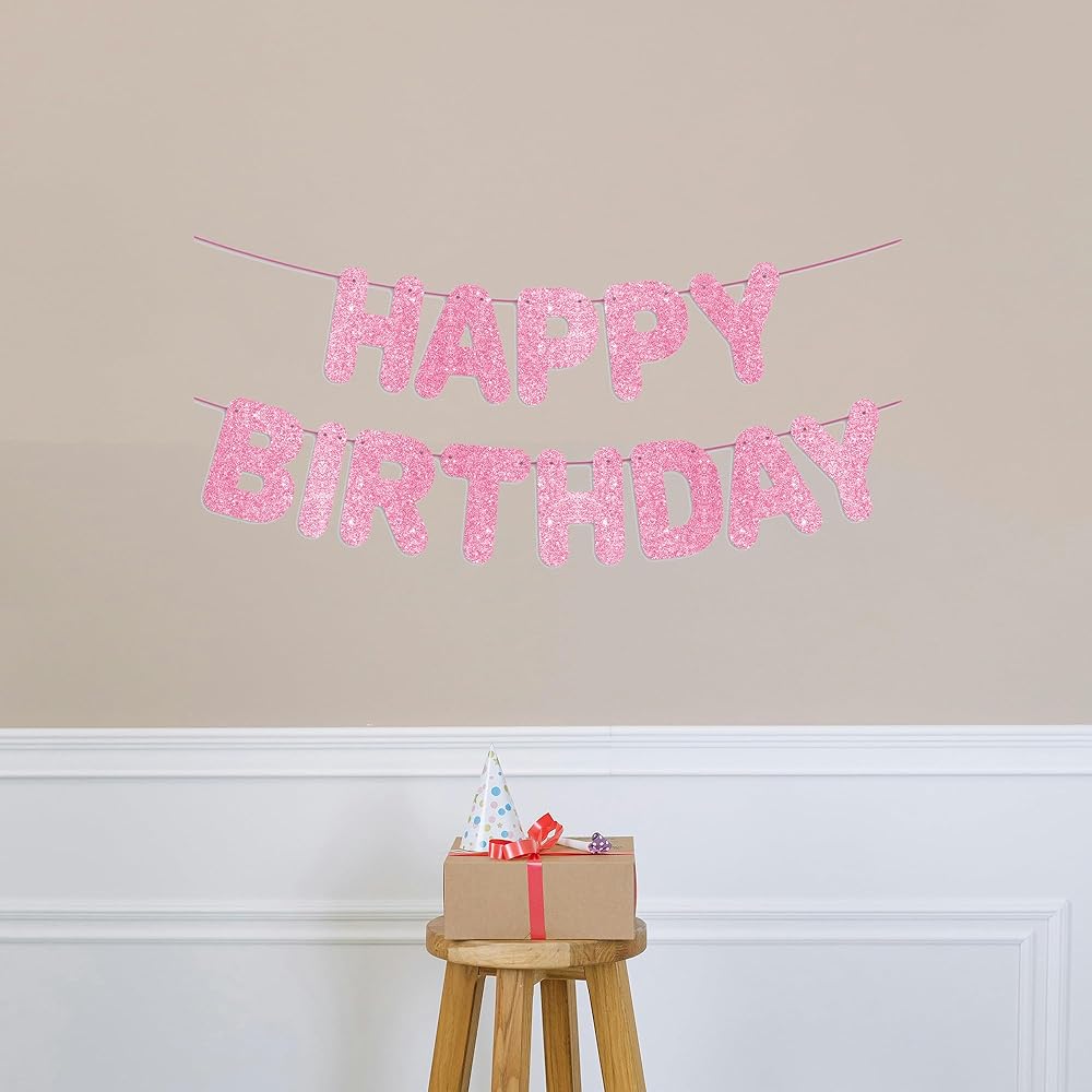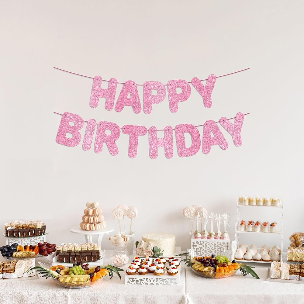 JunyRuny Pre-Strung Happy Birthday Banner Hot Pink Glitter Banner, Birthday Party Decorations & Decor for Women & Girl, Happy Birthday Backdrop/Sign, Princess Birthday Party Decorations
