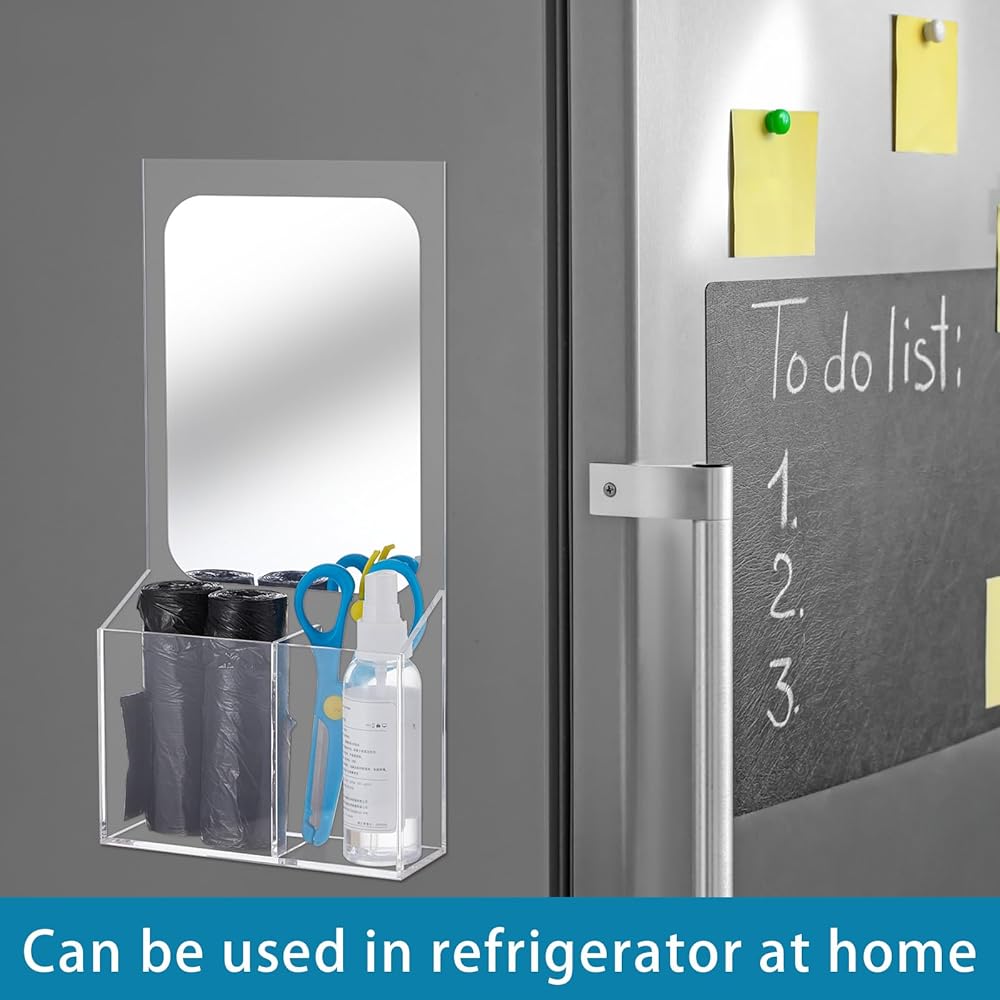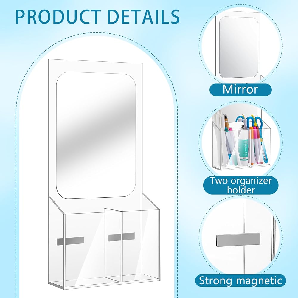 Practical Storage Function: our locker mirror with holder is designed with a built-in organizer; It has an overall size of 6 x 4 x 2 inches/15 x 10 x 5 cm, equipped with two compartments for storing stationary, cosmetics, headphones, cards, and other tiny accessories; This magnetic locker mirror provides a convenient solution for your storage needs