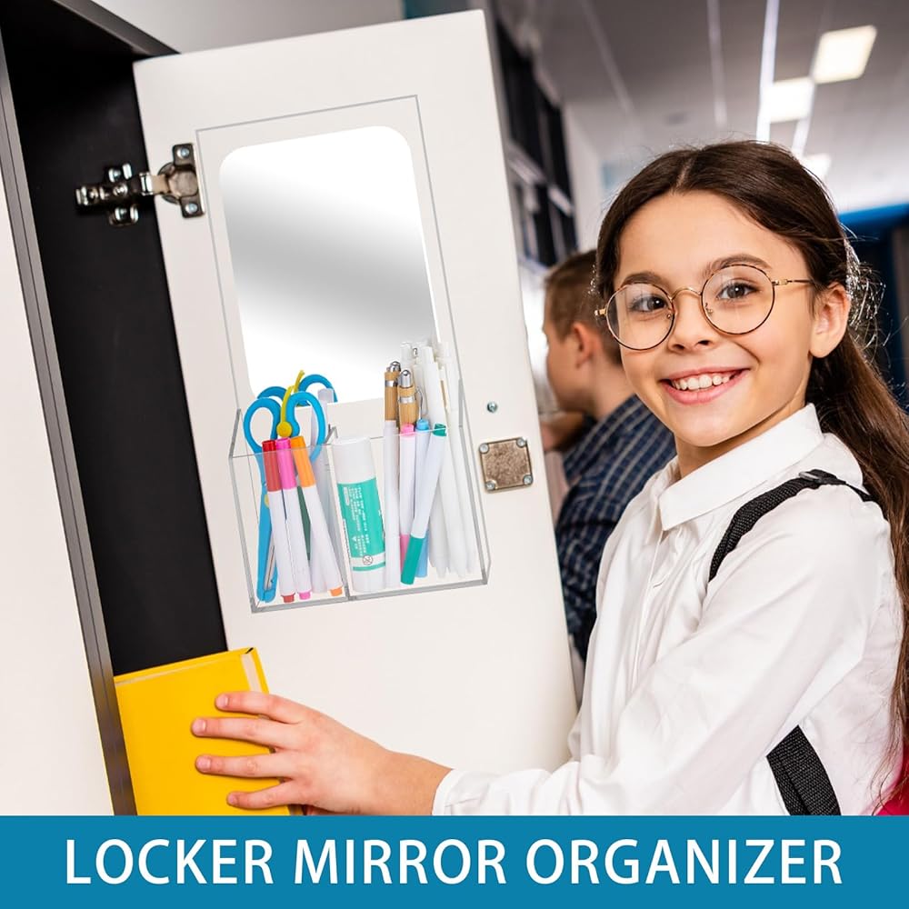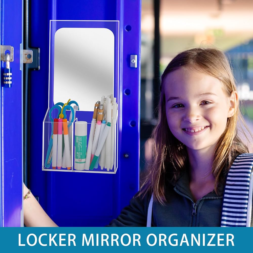 Quality Material: our locker mirror with organizer is composed of quality acrylic material; This sturdy and durable material ensures that the locker organizer shelf can withstand the test of time; Its crystal-clear mirror provides a high-definition reflection, assuring nice user experience