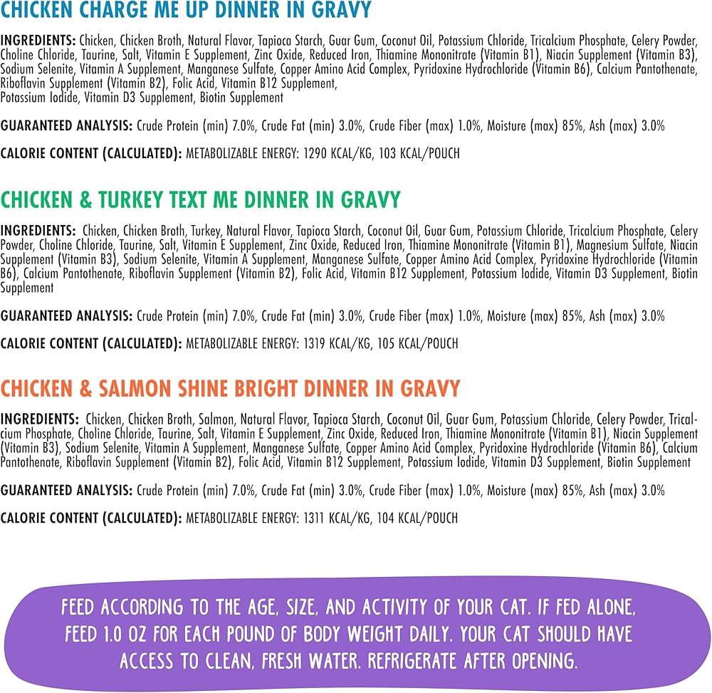 Chicken & Turkey Text Me (2.8oz Pouch, Pack of 12) Cage-free ground chicken and turkey in a tasty gravy.