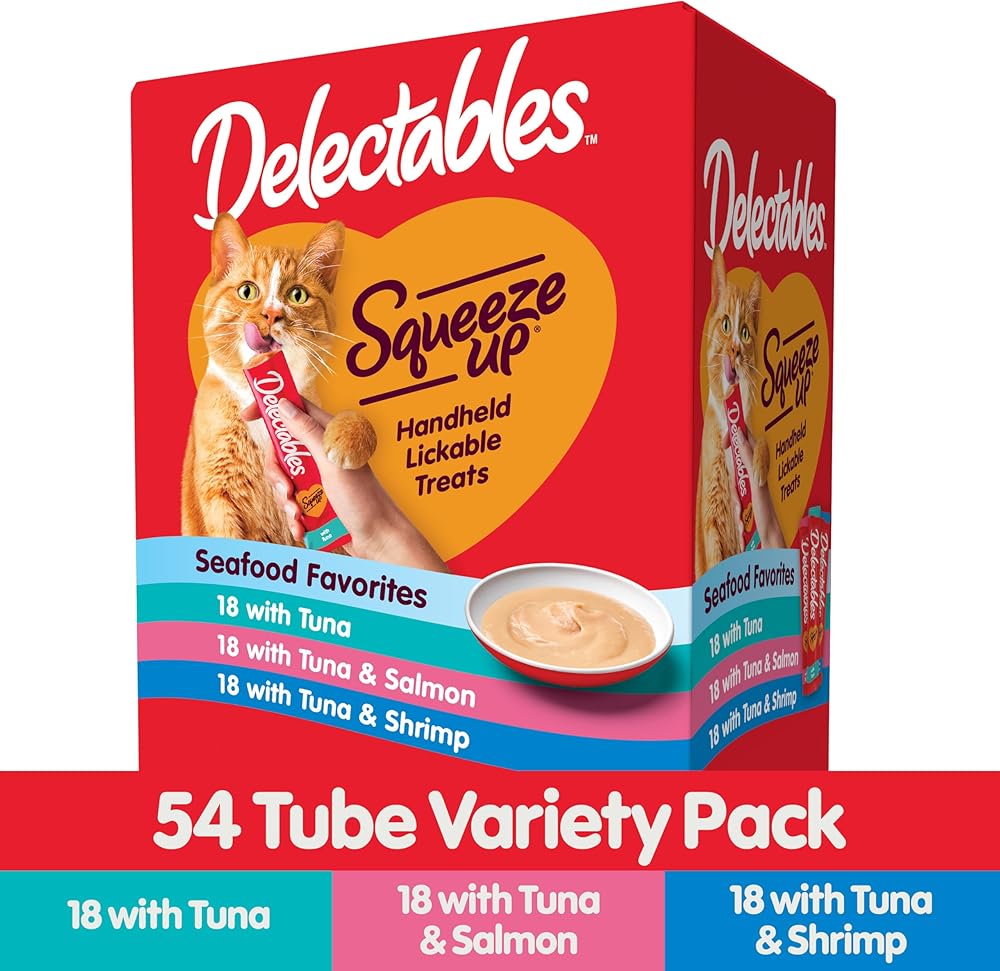• CONTAINS: 48 x 0.5oz Squeeze Up lickable cat treat tubes