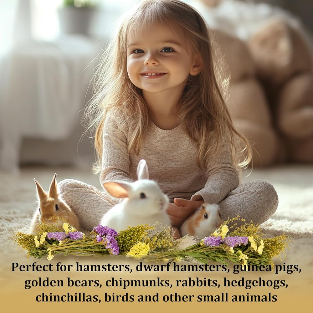 مثالي للحيوانات الأليفة: مناسبة للهامستر ؛ قزم الهامستر خنازير غينيا الدببة الذهبية Chipmunks الأرانب القنفذ شينشيلاس الطيور والحيوانات الصغيرة الأخرى. لا يمكن للحيوانات الأليفة اللطيفة أن تقدر فقط القوام المختلفة للزهور المجففة الطبيعية ، ولكن يمكن أيضًا إثراء تجربتها من خلال مضغها ، مما يجعلها مضغًا جيدًا