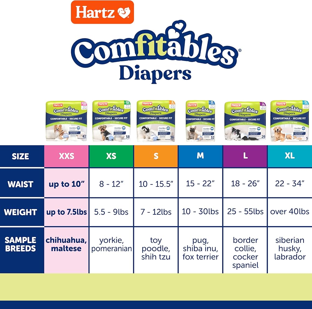 الملاءمة القابلة للتخصيص: تعمل علامات التبويب Velcro القابلة للتعديل والقابلة للتطبيق تمامًا مثل حفاضات الطفل لتخصيص الملاءمة دون التمسك ببشرة الكلاب أو تهيجها.