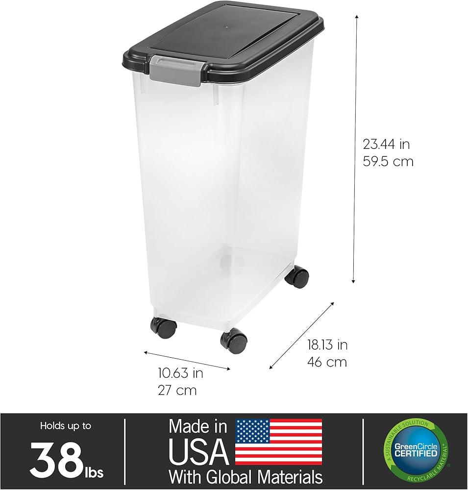 طعام للجميع: للقطط والكلاب والطيور والمزيد! قم بتخزين الأطعمة الجافة لأحد أفراد أسرتك اللطيفة في حاوية طعام الحيوانات الأليفة القابلة للختم والمحمولة. تعد حاويات تخزين الطعام التي تبلغ 47 كبارًا رائعًا لتخزين حوالي 38 رطلاً من الأطعمة الجافة.